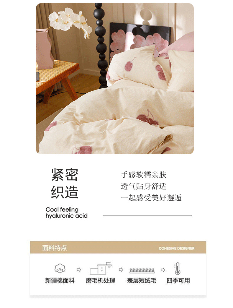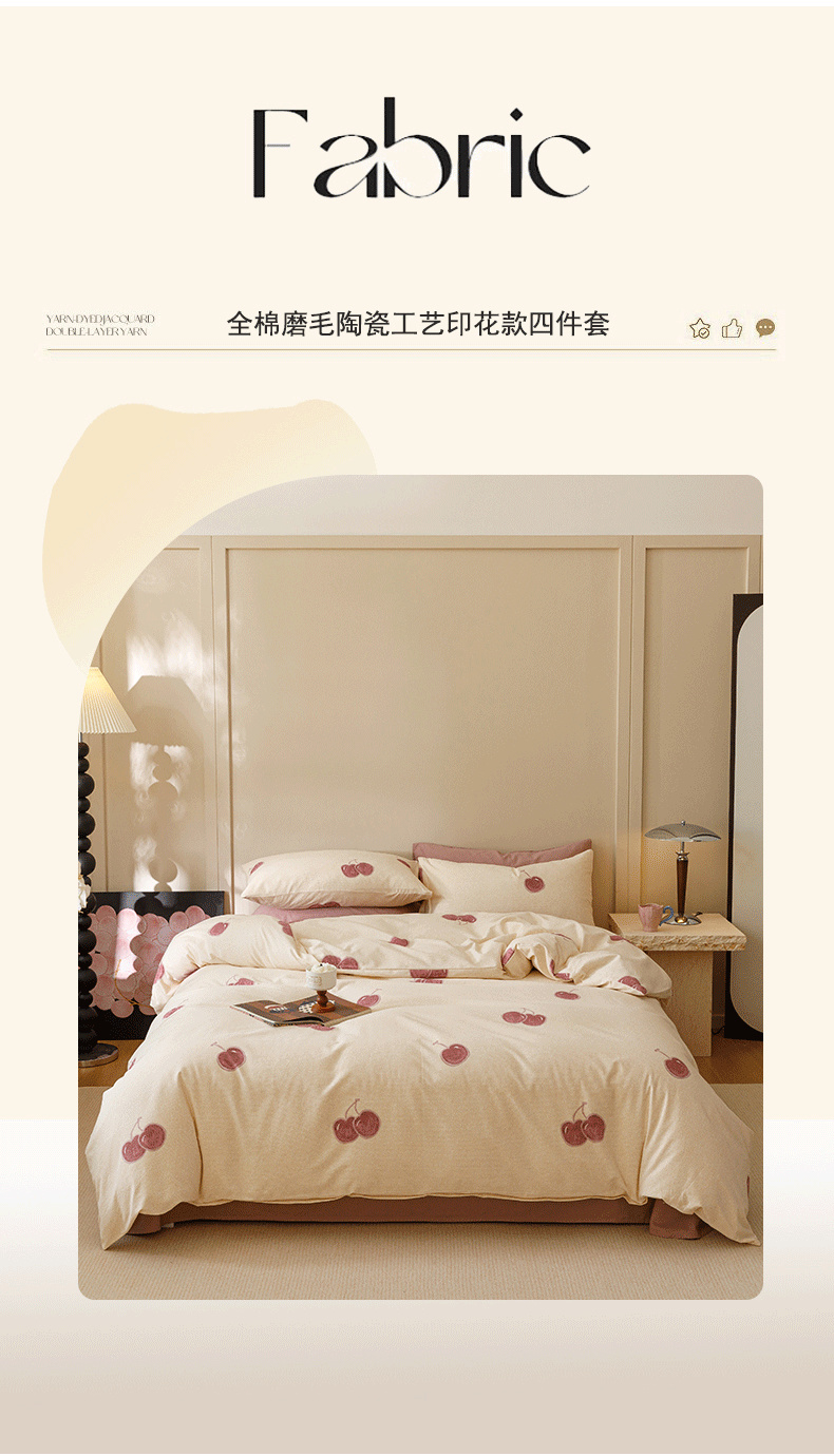当前位置: 91家纺网 > 商品网购 > 床品套件 > 四件套 > 全棉普通四件套 > 2024新款全棉陶瓷磨毛印花四件套 甜甜时光-粉