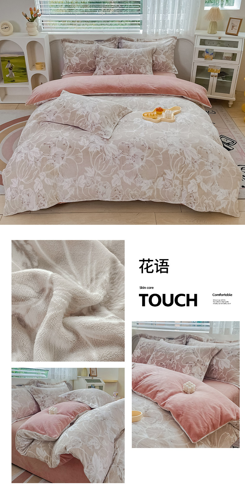 当前位置: 91家纺网 > 商品网购 > 床品套件 > 四件套 > 牛奶绒四件套 > 锦罗绣 2024新款全消光230克牛奶绒烂花绒提花四件套 花语