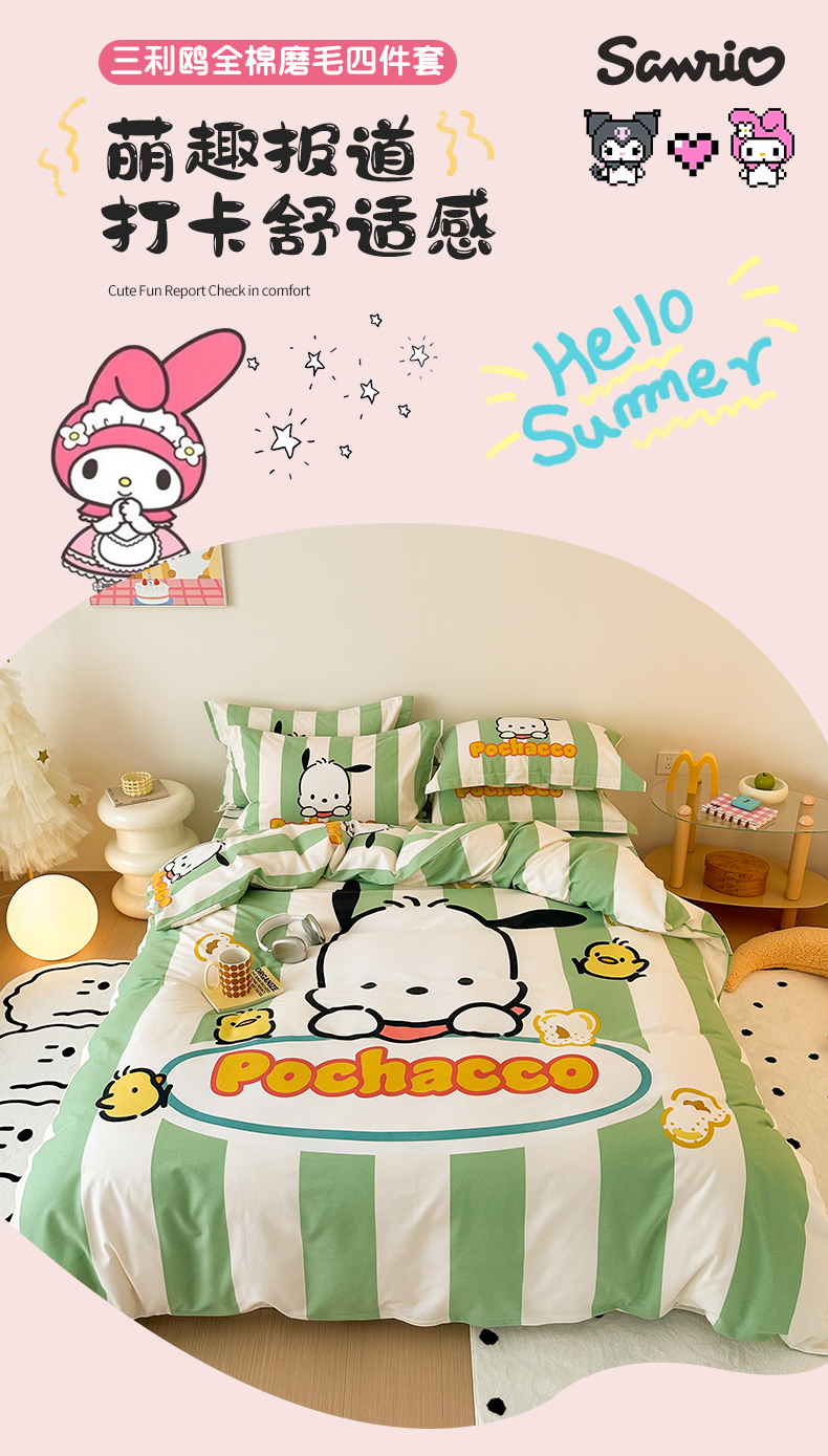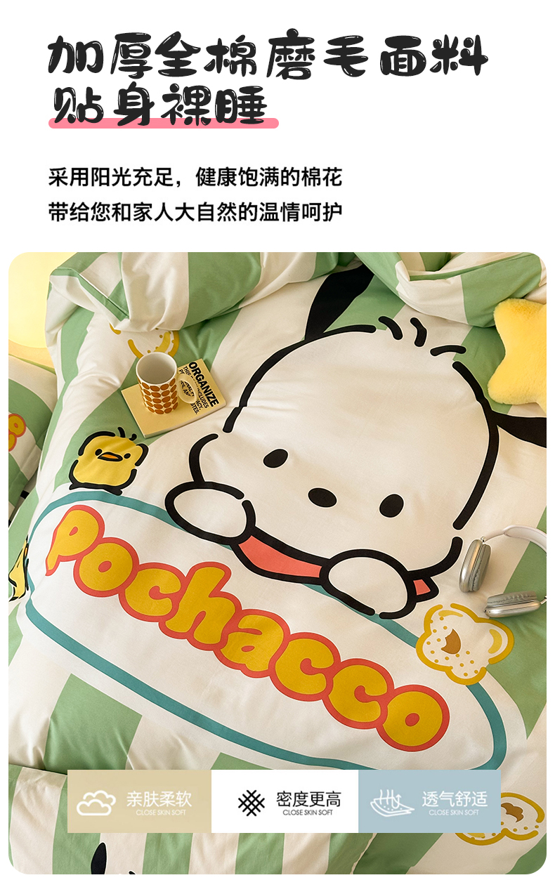 典曼家纺 2024秋冬新品三丽鸥磨毛大版卡通四件套 帕恰狗