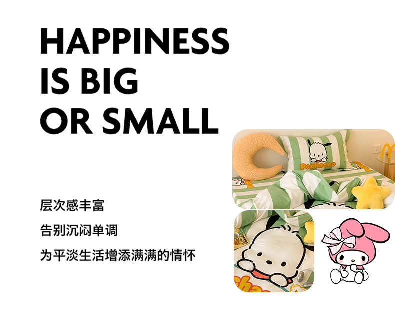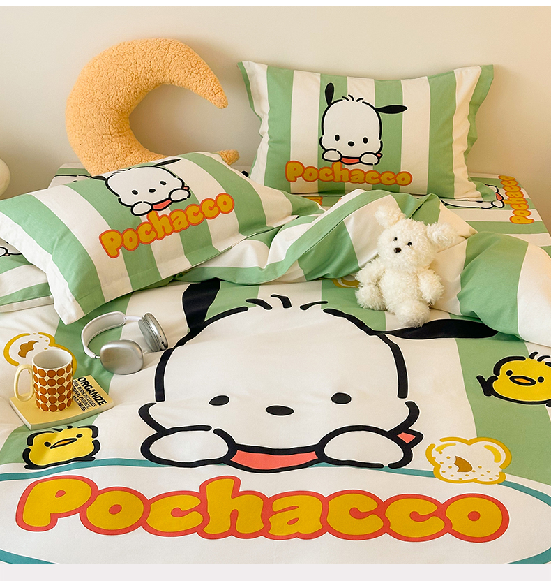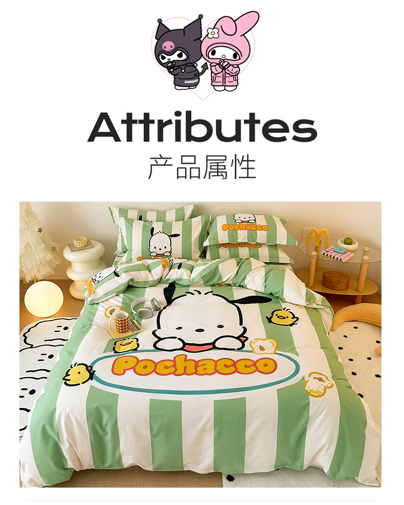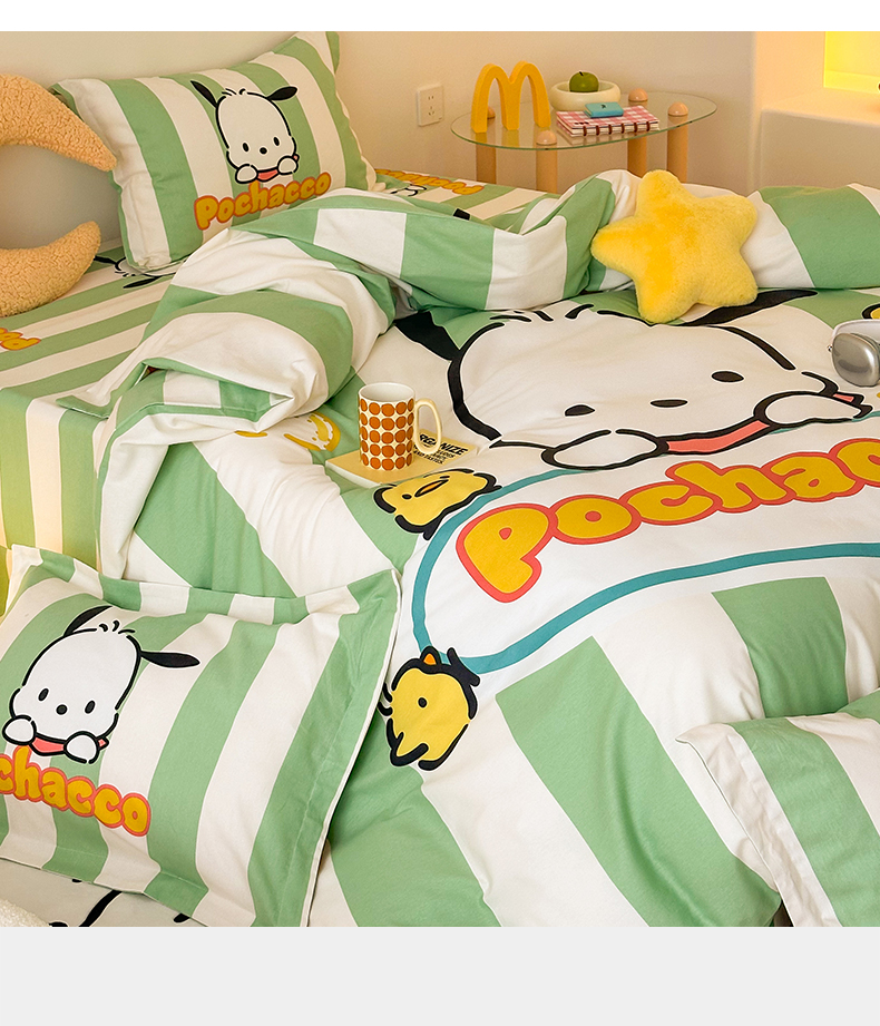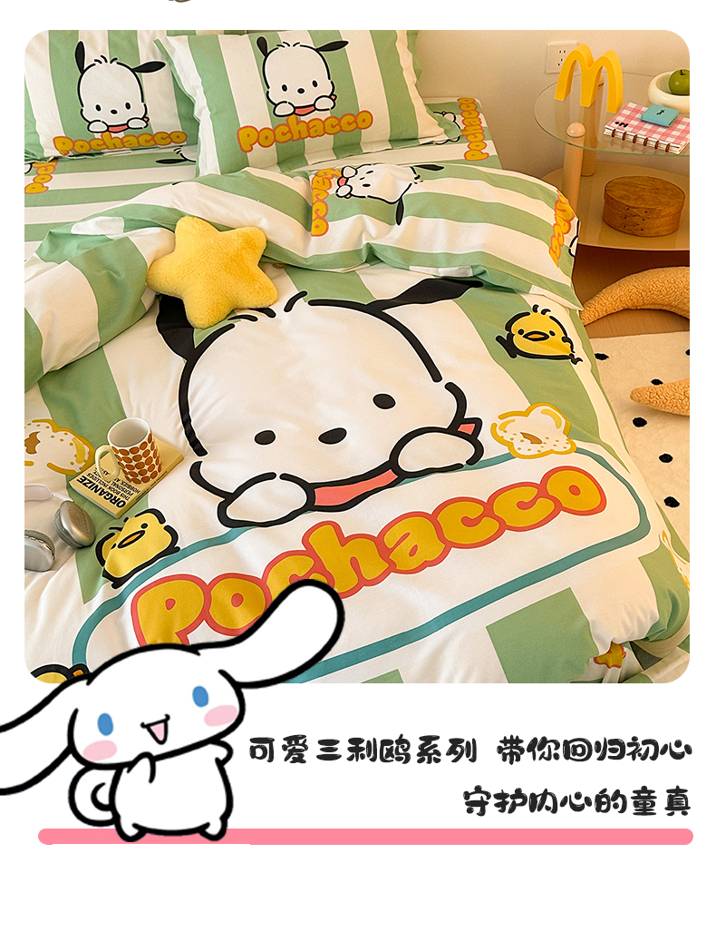 商品名称:典曼家纺 2024秋冬新品三丽鸥磨毛大版卡通四件套 帕恰狗
