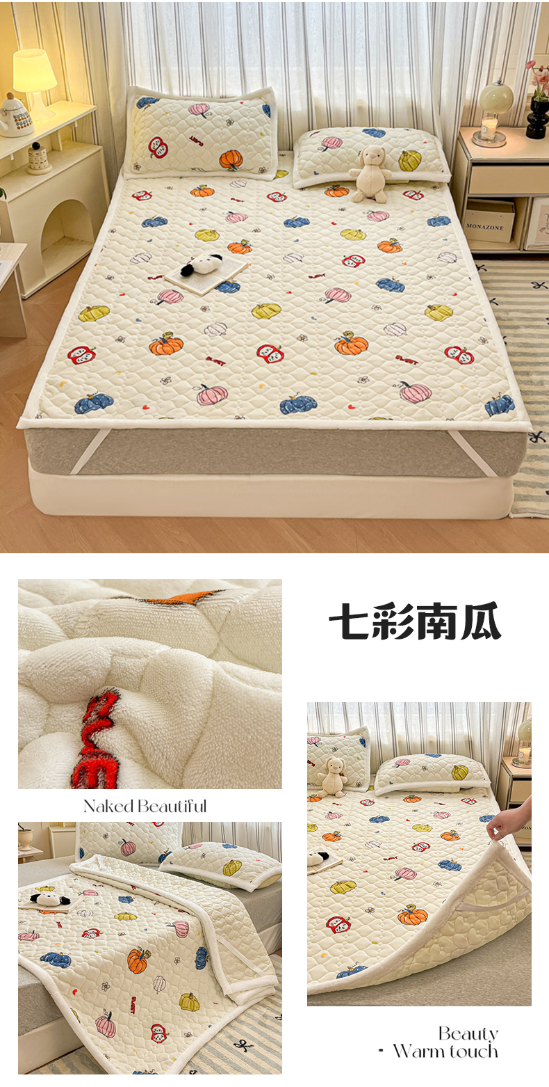 当前位置: 91家纺网 > 商品网购 > 床垫/床褥 > 普通床垫 > 启程家纺 2024新款A类印花牛奶绒床垫加厚绒保暖床护垫 七彩南瓜