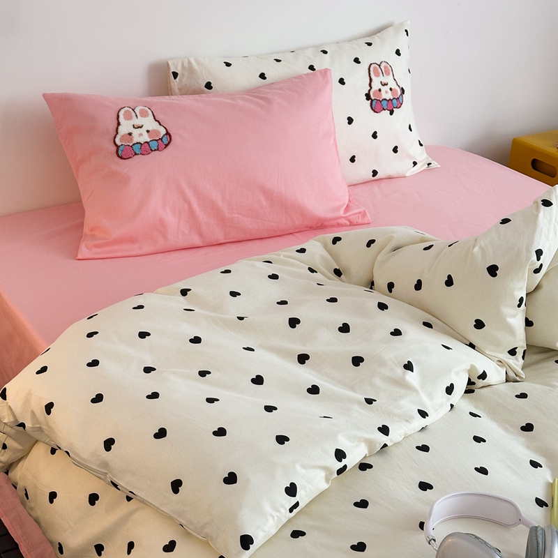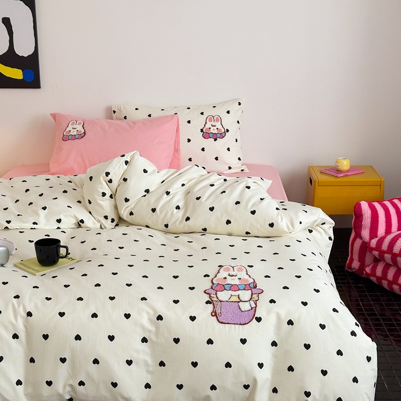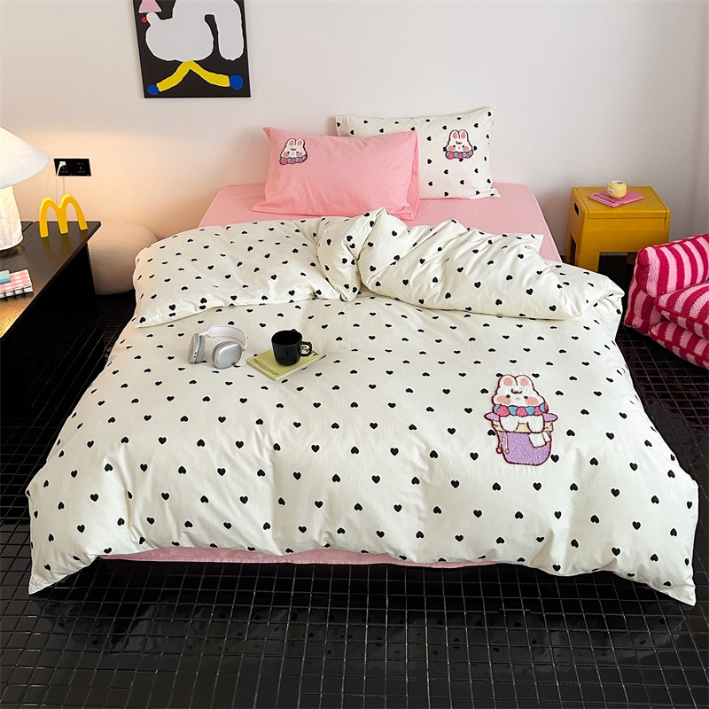 珺柔家纺 2024新款全棉印加毛巾绣四件套 爱心兔