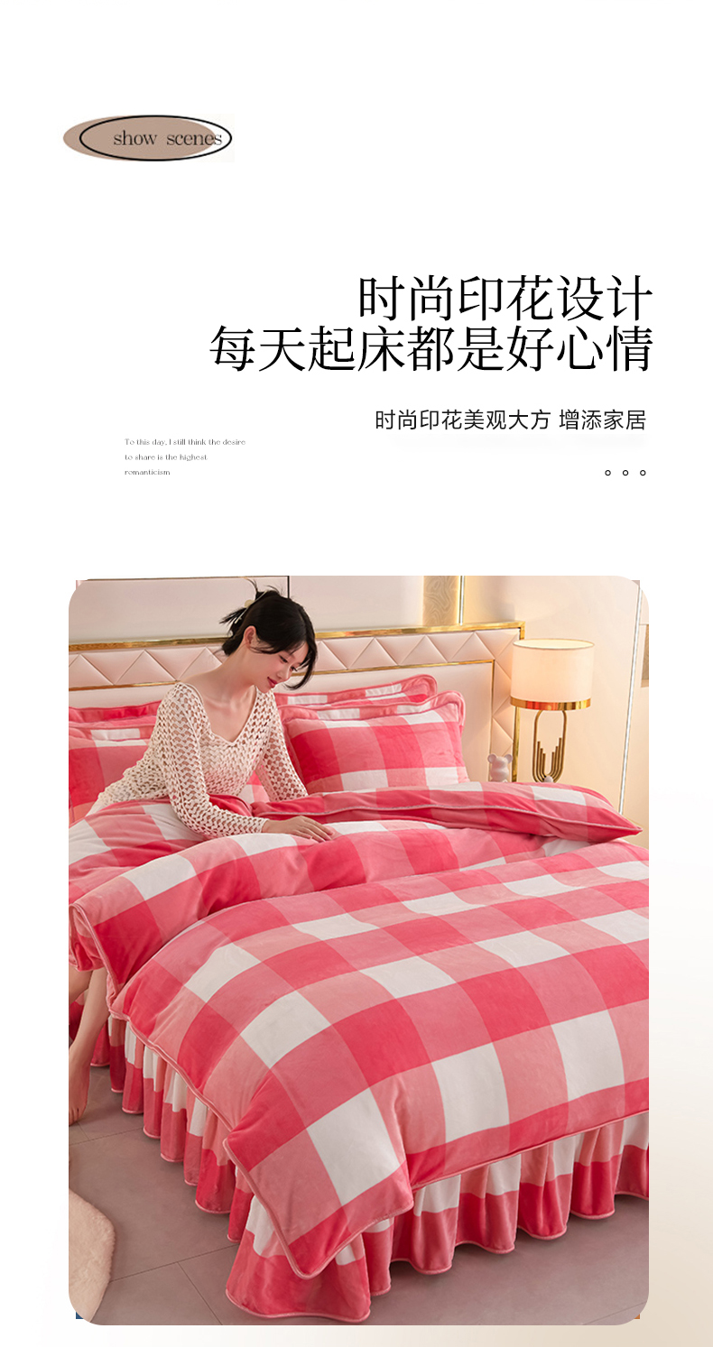 绒耀 2025新款高克重牛奶绒四件套保暖四件套直播爆款电商爆款 粉格