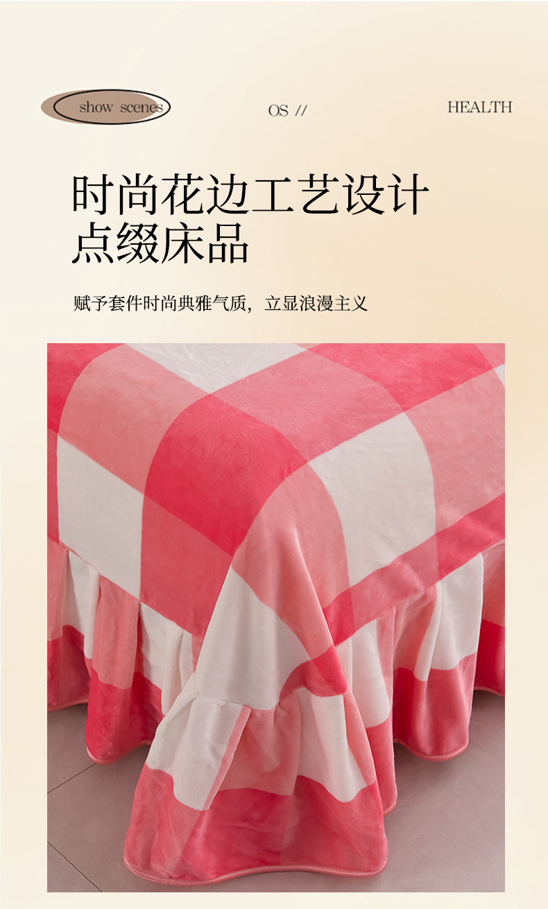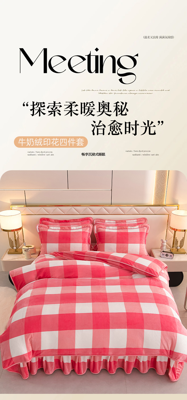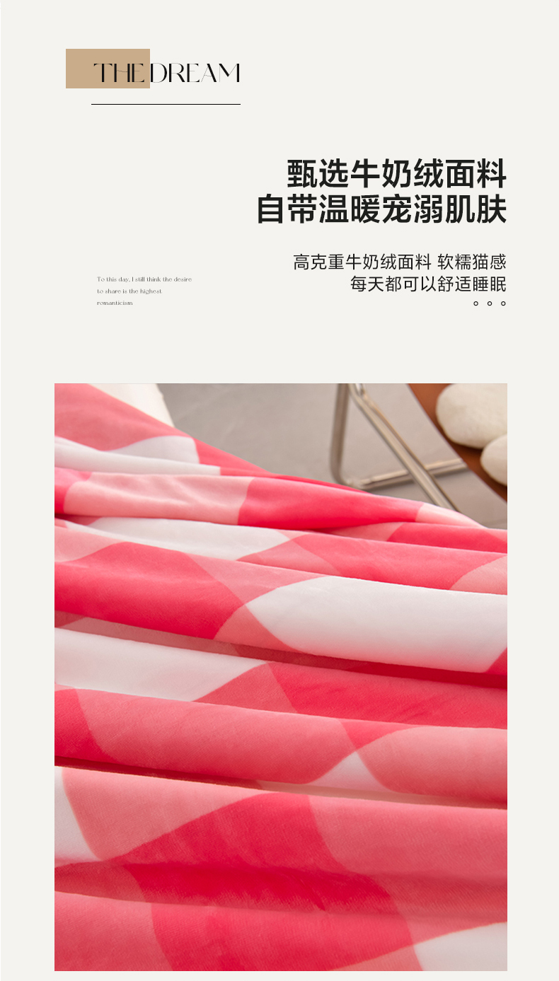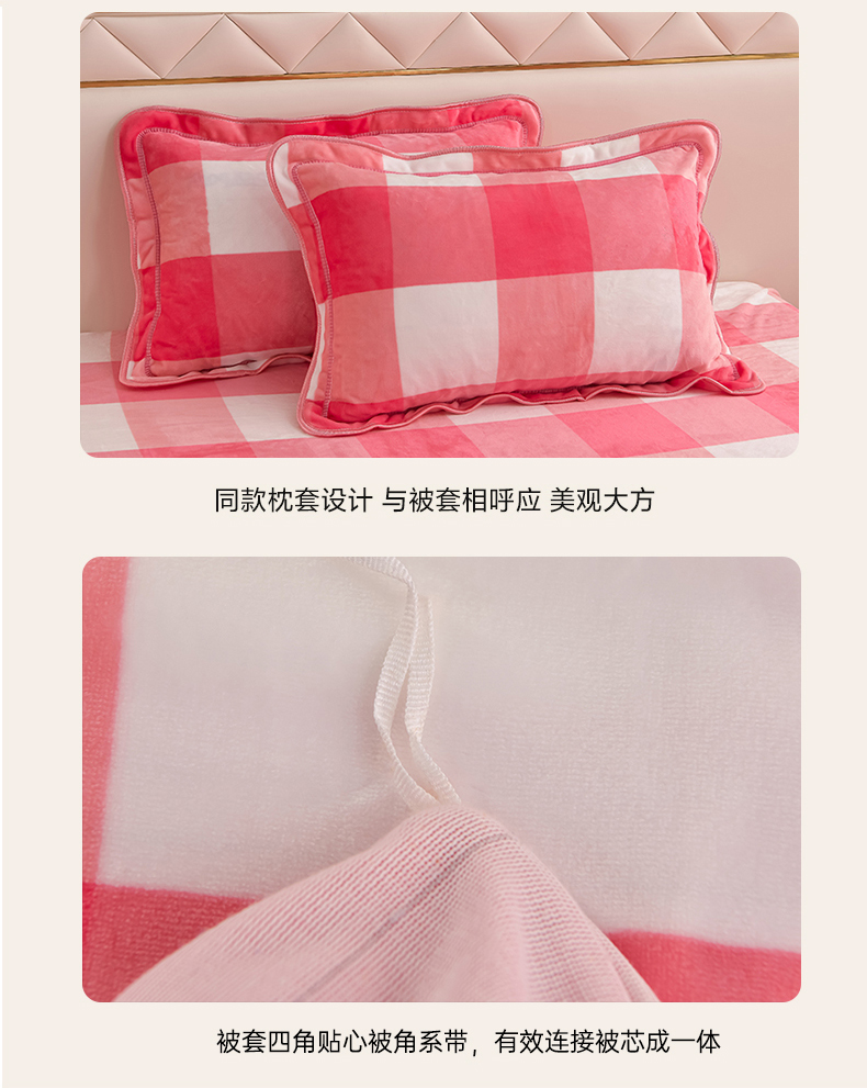 商品名称:绒耀 2025新款高克重牛奶绒四件套保暖四件套直播爆款电商爆款 粉格
