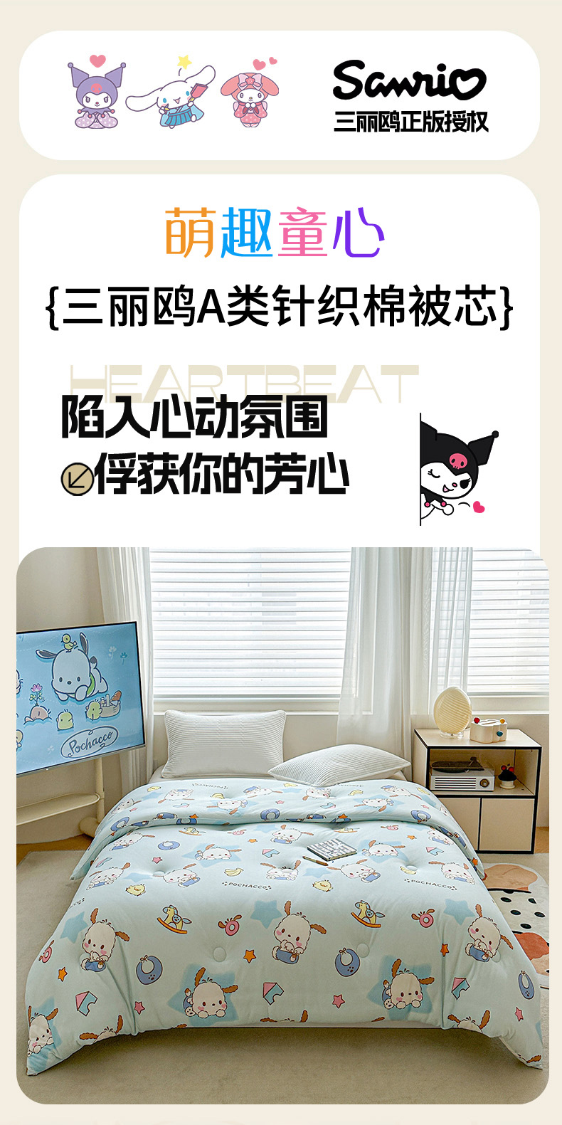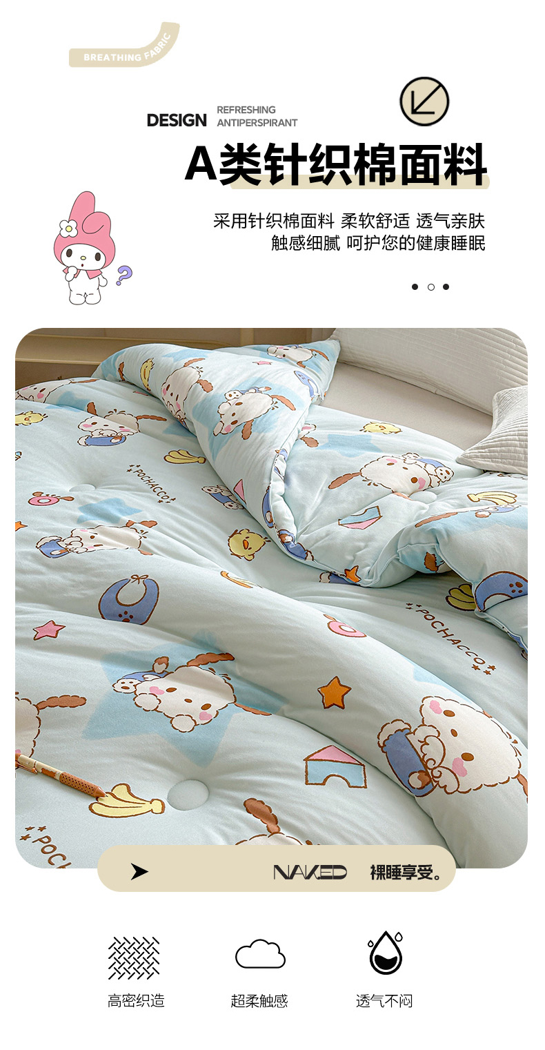 商品名称:典曼家纺 2024新款三丽鸥正版授权针织棉被芯家用被子四季被儿童被 清新帕恰