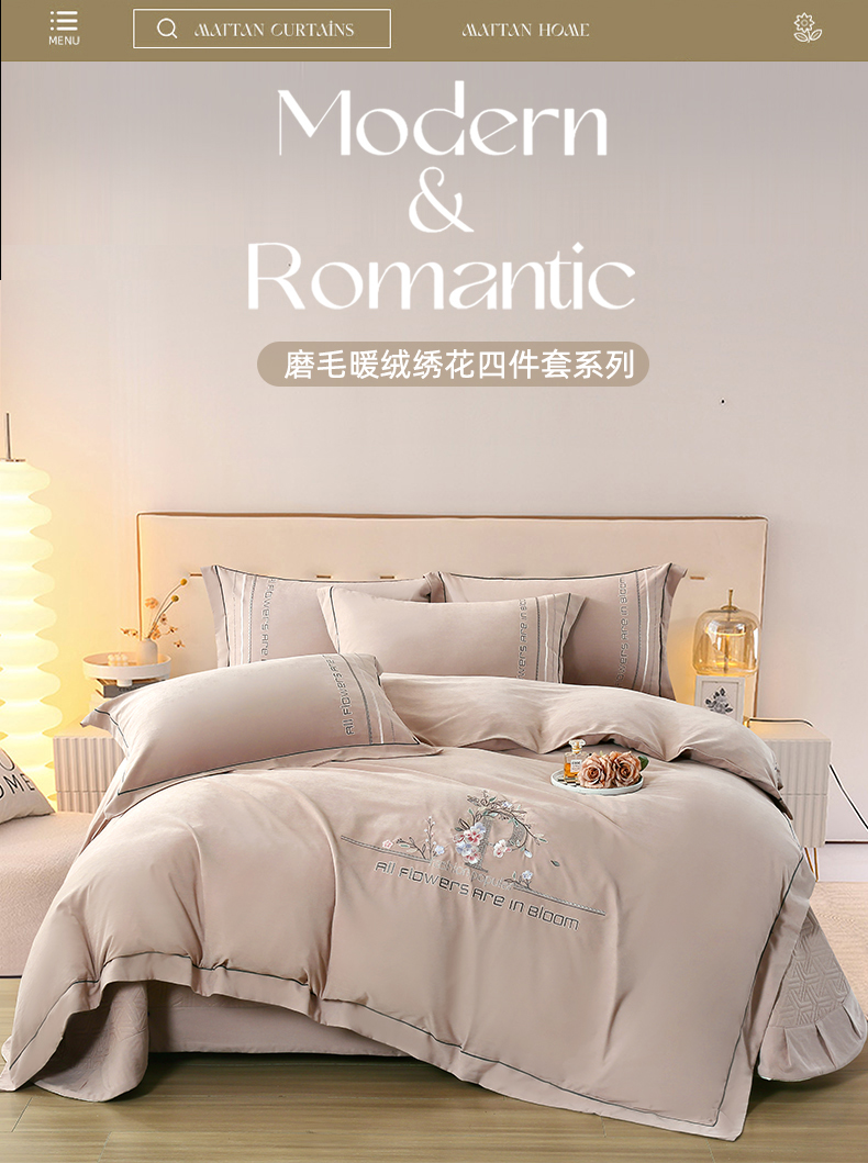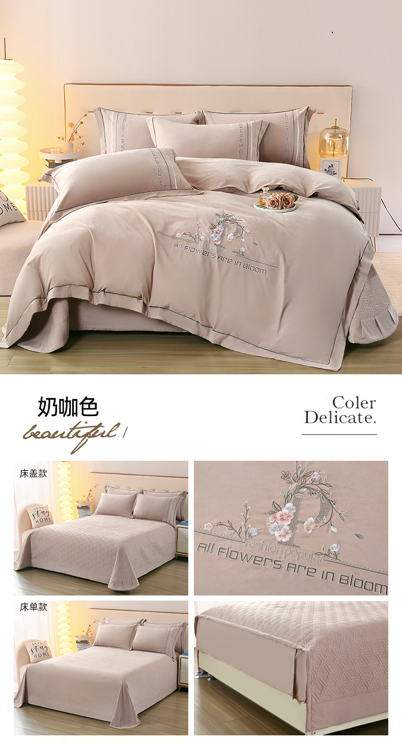 当前位置: 91家纺网 > 商品网购 > 床品套件 > 四件套 > 其它四件套 > OL家纺 2024新款磨毛暖绒床盖夹棉四件套刺绣轻奢风 奶咖色
