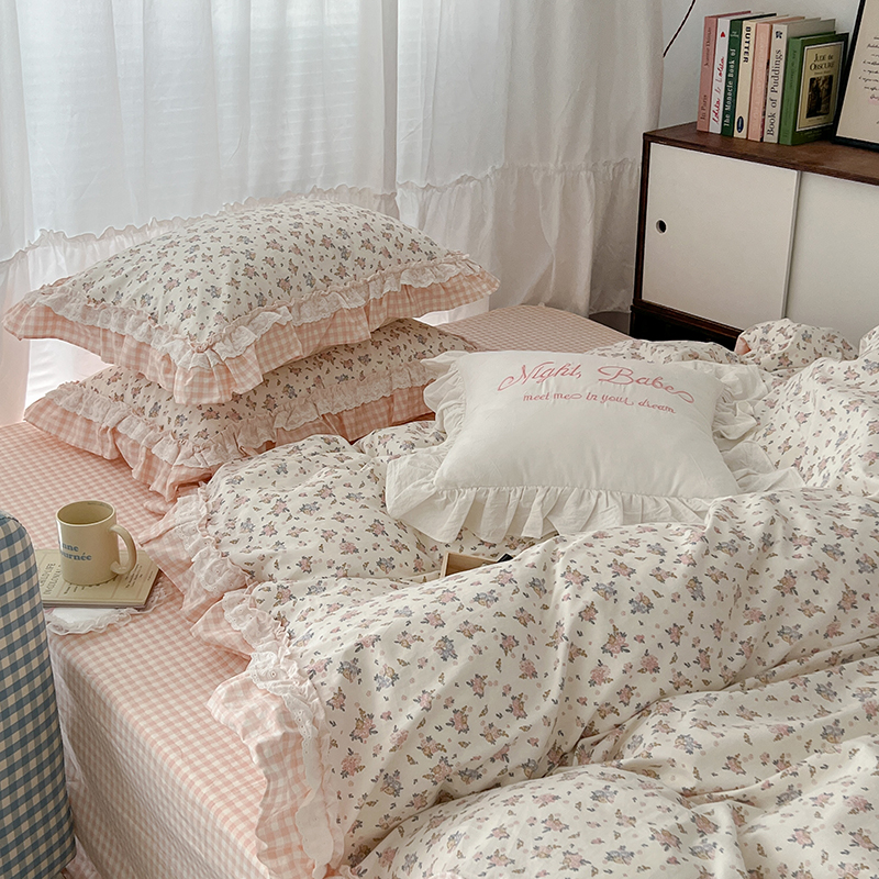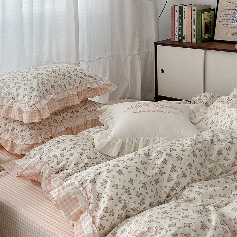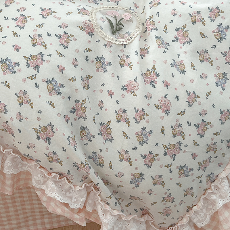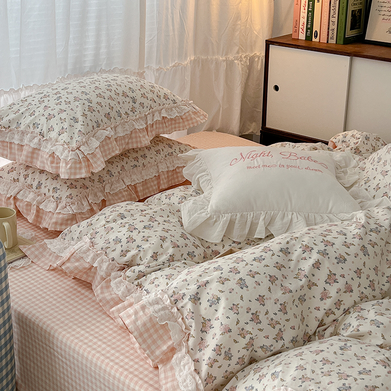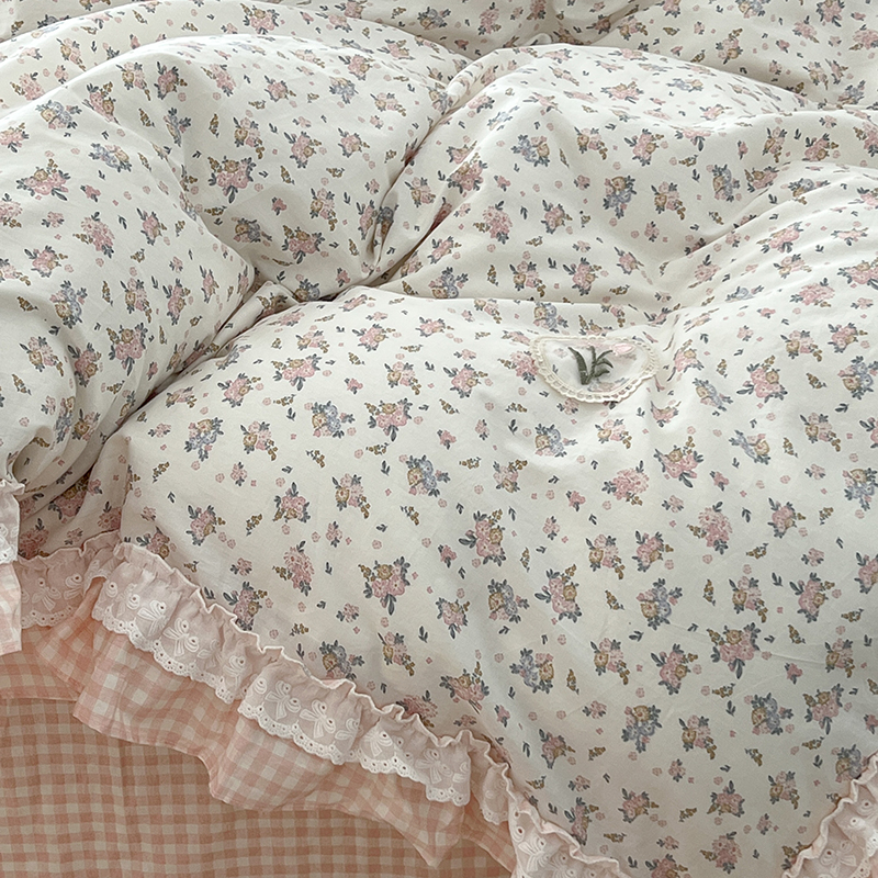 商品名称:昔可家纺 2024蕾丝双层花边款全棉四件套 春鹭杏花