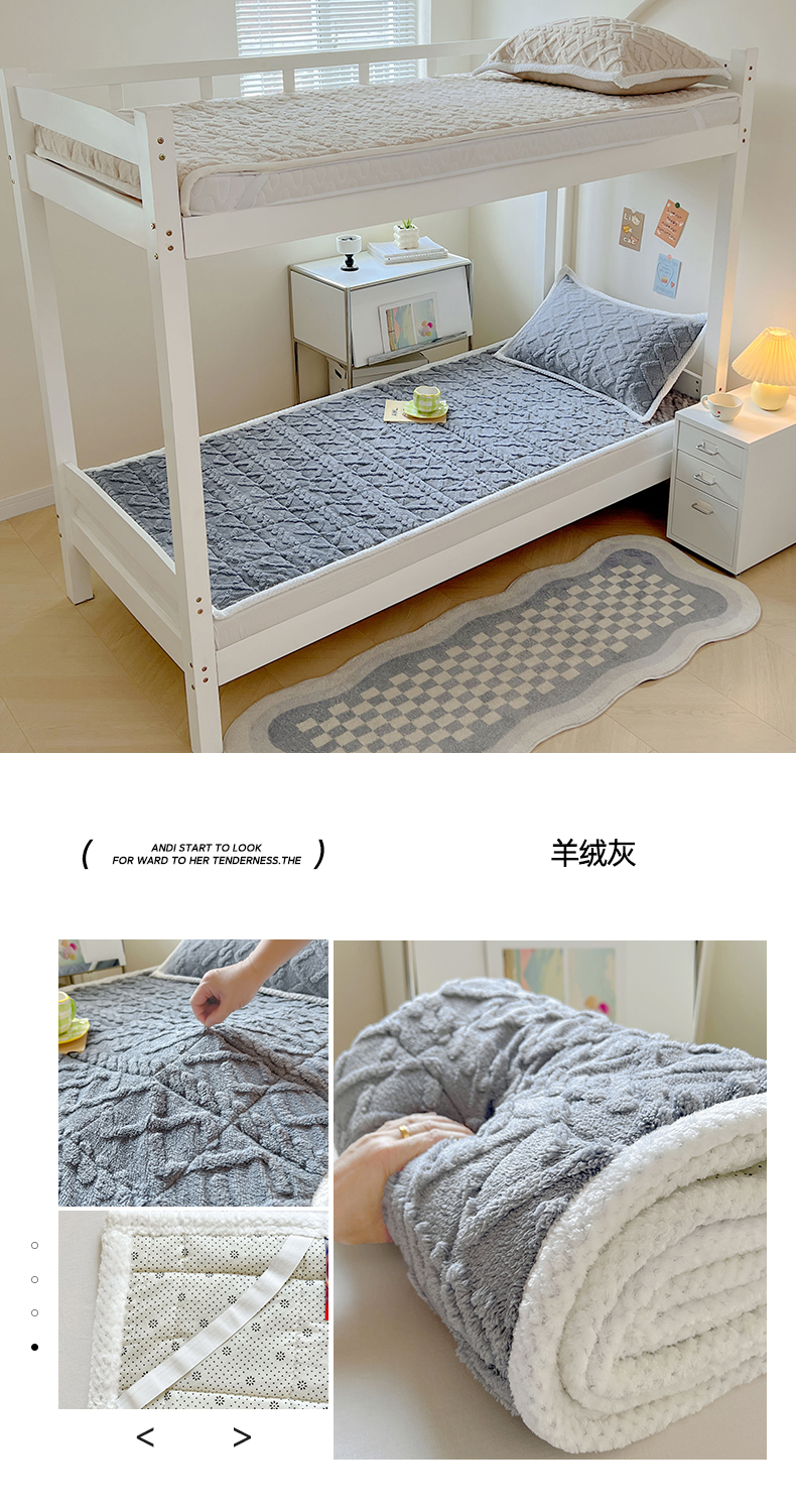商品名称:(总)贝拉梦家纺 2024新款塔肤绒牛奶绒纯色学生宿舍夹棉软床垫子护床垫