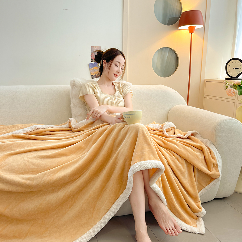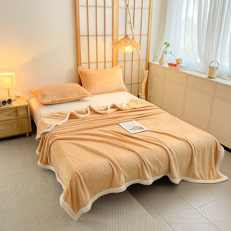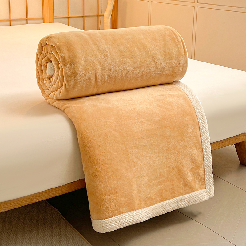 千荨 2024新款亲肤舒适高克重双面牛奶绒纯色毛毯 牛奶绒-驼色