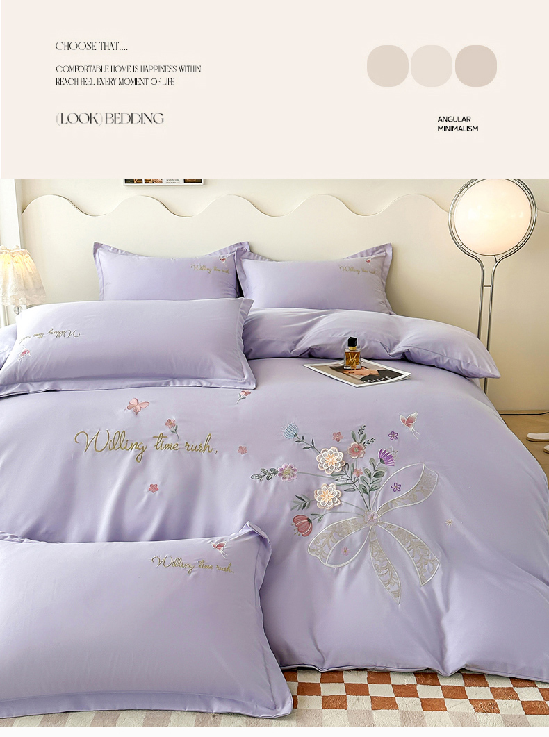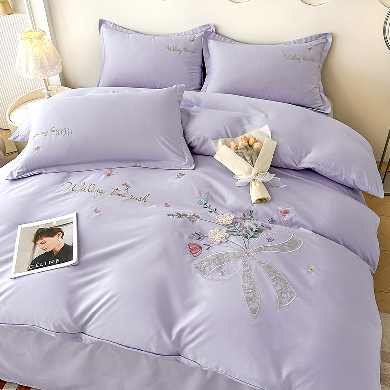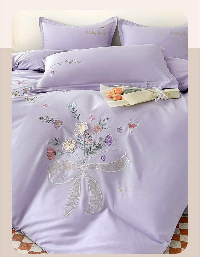 帝菲妮 2025新款法式公主风立体花绣花优肤棉刺绣四件套-花开半夏 花开半夏-浅紫