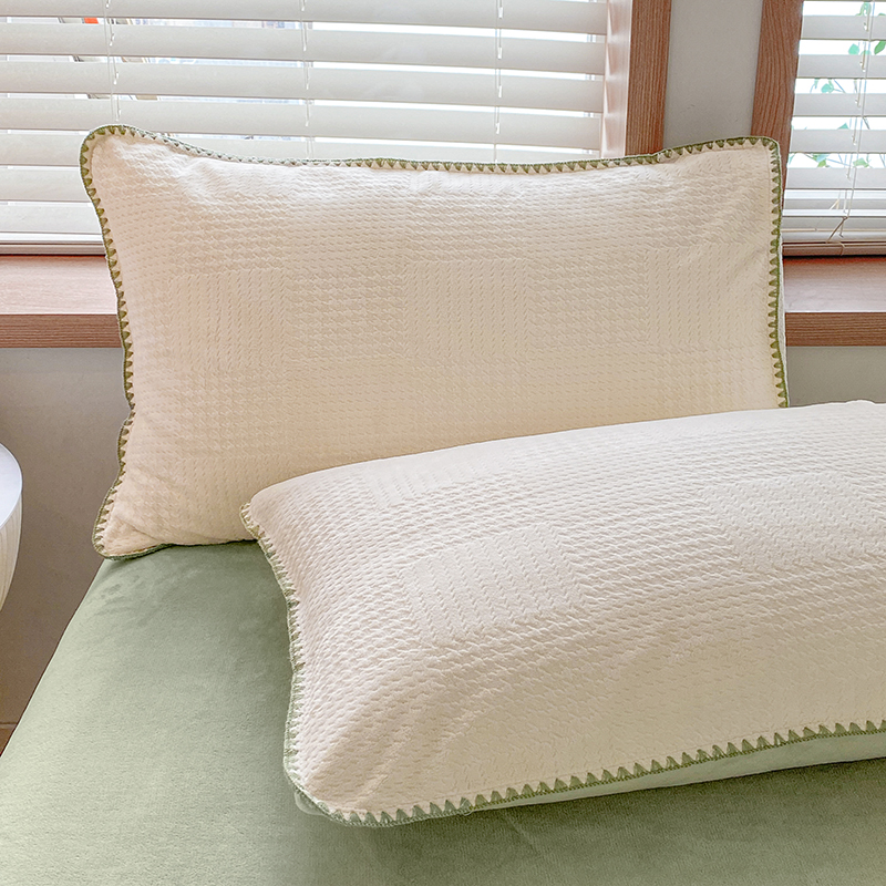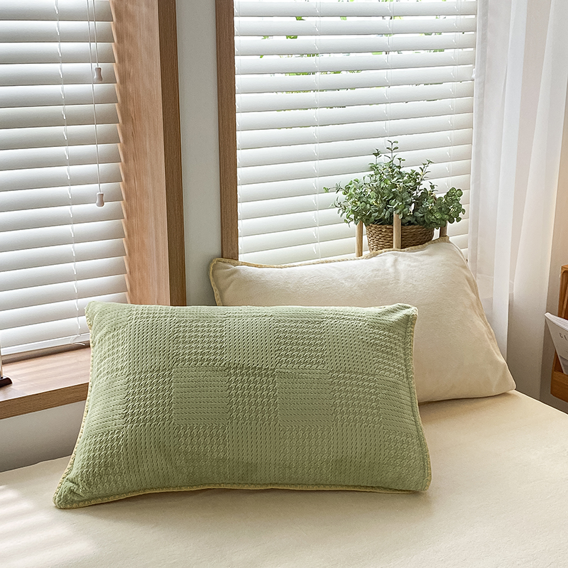 (总)桃子家居 2024新款A类无印ins华夫格提花烂花雕花剪花三角贝壳边工艺加厚牛奶绒枕套