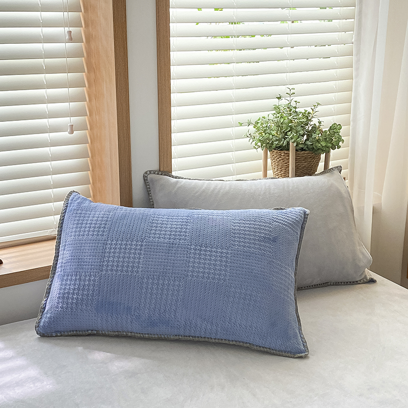 商品名称:(总)桃子家居 2024新款A类无印ins华夫格提花烂花雕花剪花三角贝壳边工艺加厚牛奶绒枕套