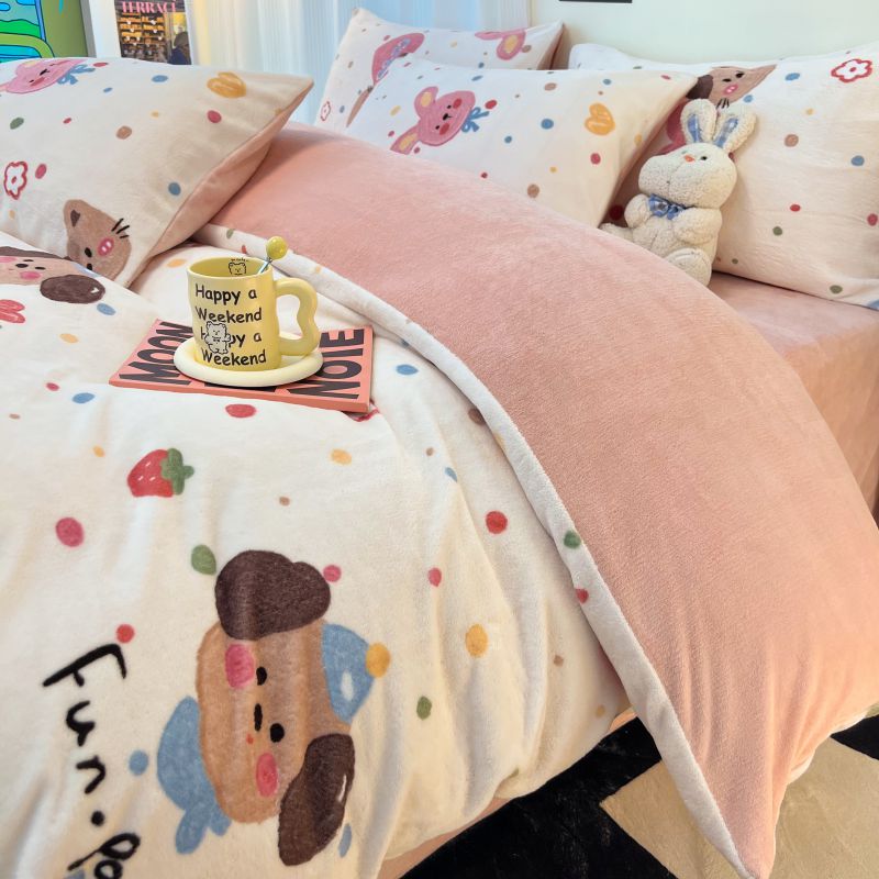 (总)HL原创 2025新款亲肤舒适韩版温暖牛奶绒四件套-花边款,花边款-法式花园,花边款-蝴蝶结,花边款-简约格,花边款-美拉德格子,花边款-甜心小兔,花边款-星星熊
