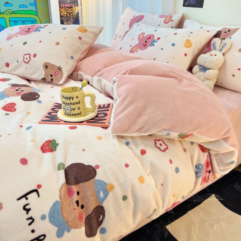 商品名称:2024新款原创白色小清新场景牛奶绒单被套 糖果屋