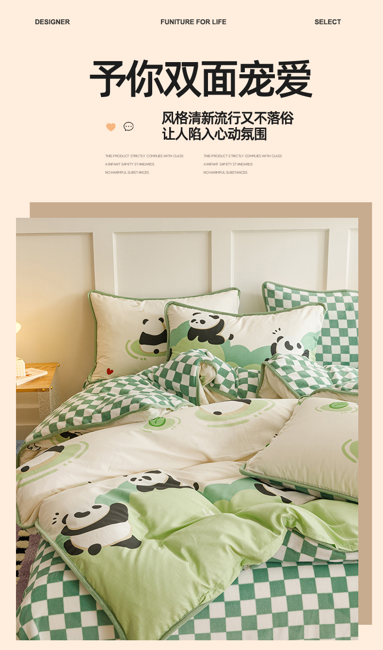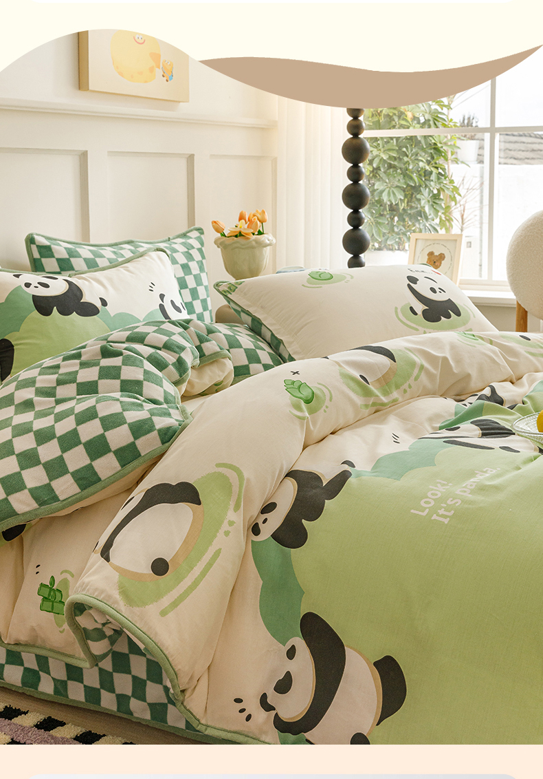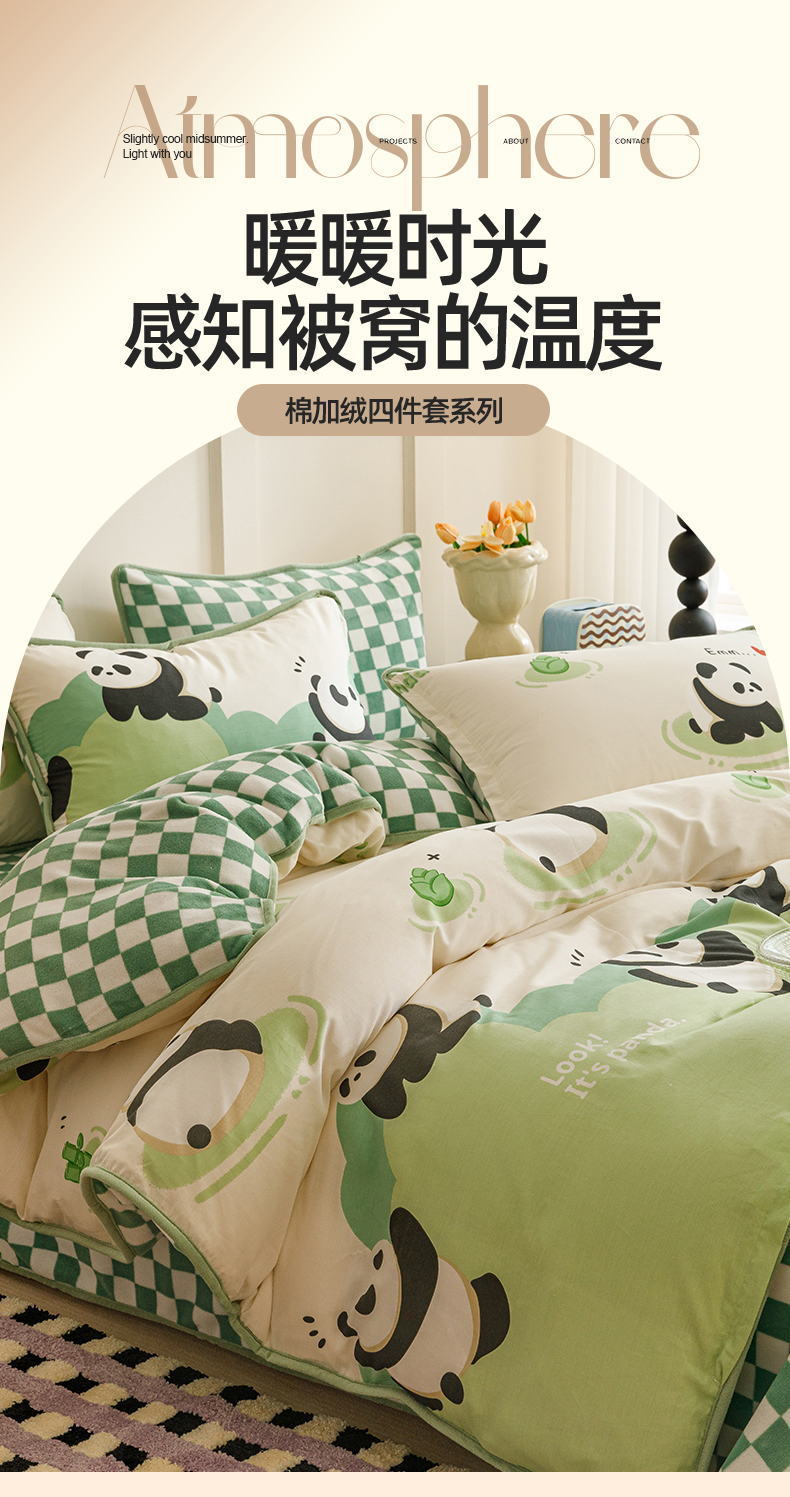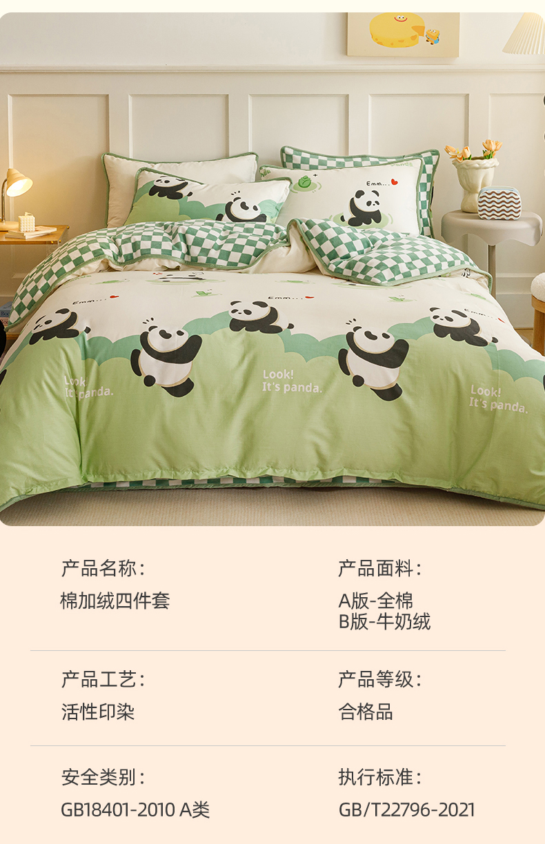 当前位置: 91家纺网 > 商品网购 > 床品套件 > 四件套 > 牛奶绒四件套 > 红粉佳人 2025新款棉加绒印花四件套 熊猫乐园