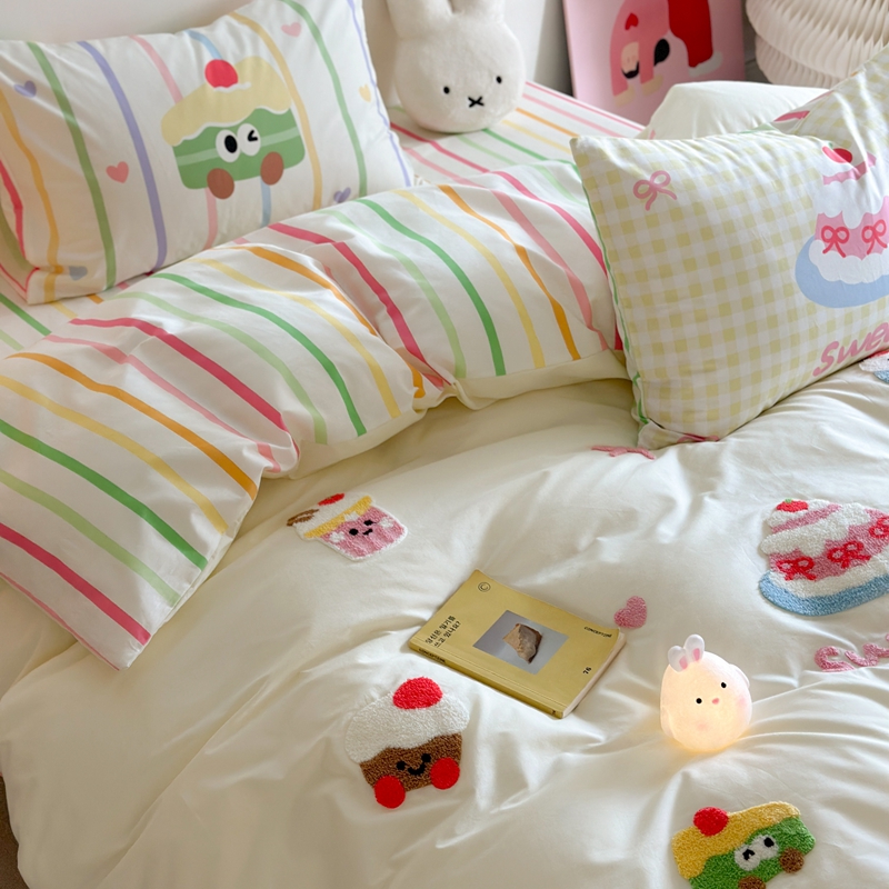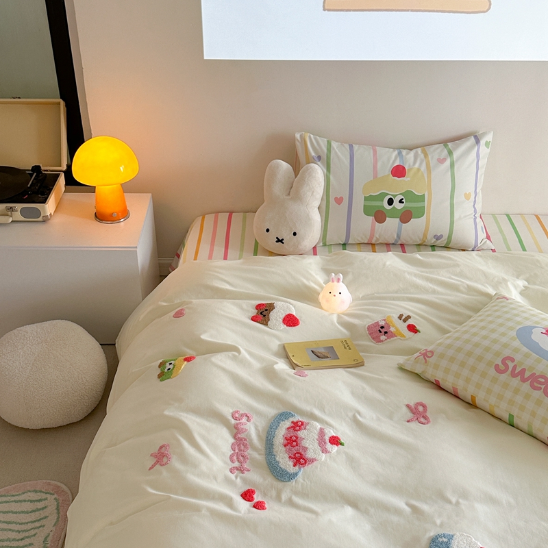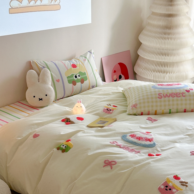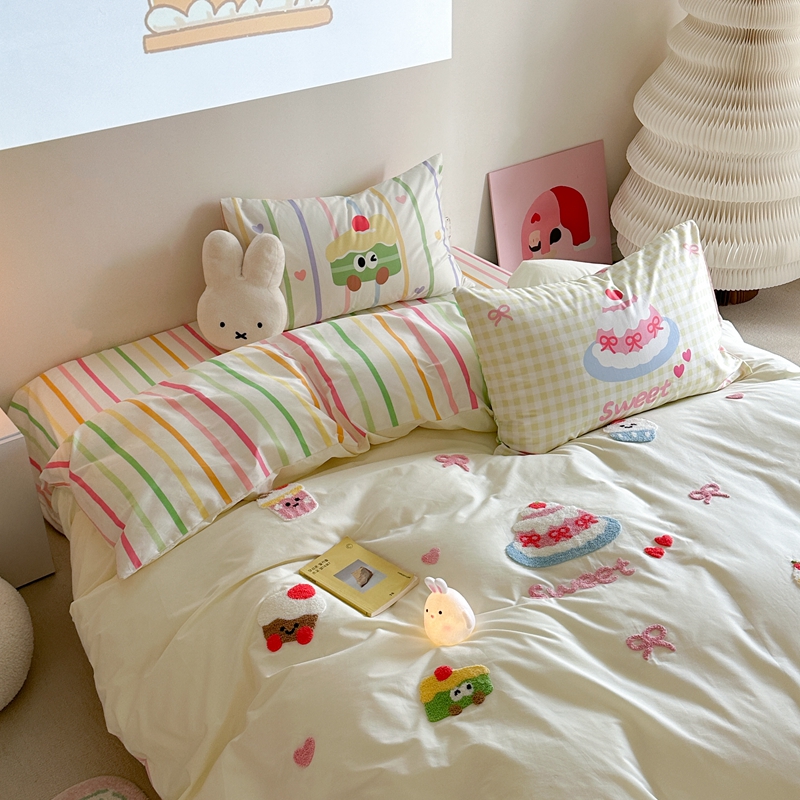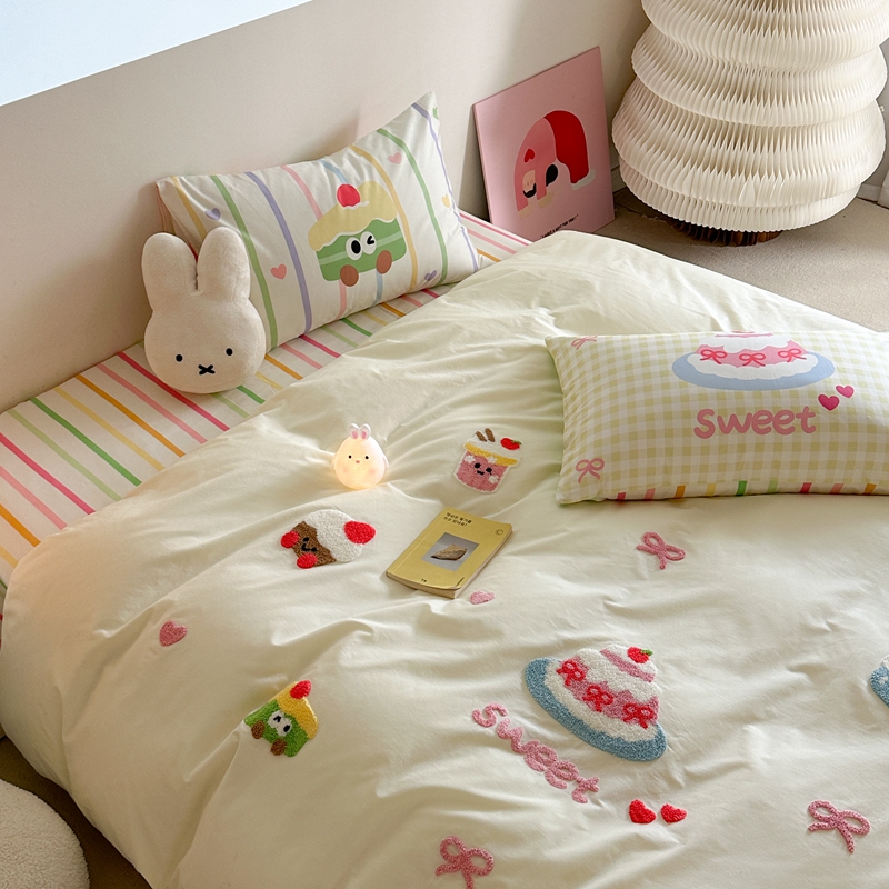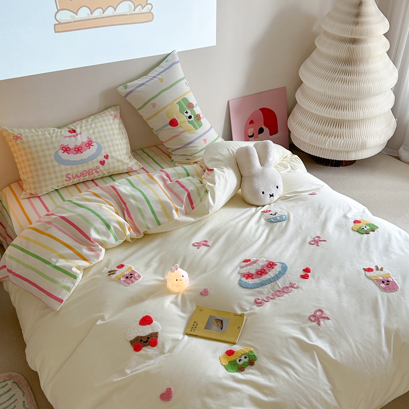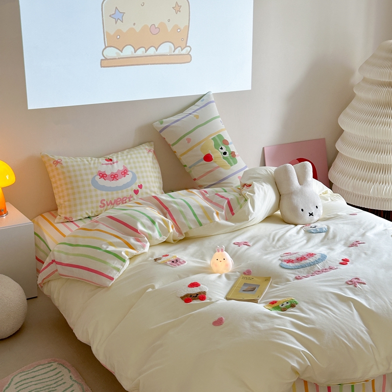 (总)柚子YOUTH 2025新款全棉双层纱贴布绣四件套,棒球熊猫,贝雷帽,冰淇淋小熊,格子玩偶,碎花小兔,小黑猫