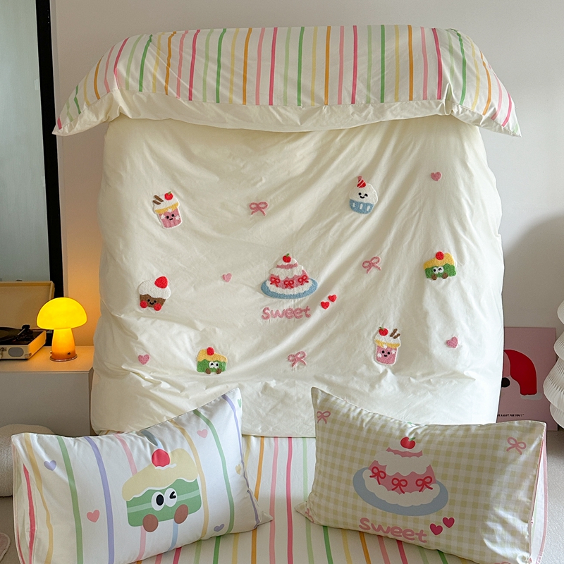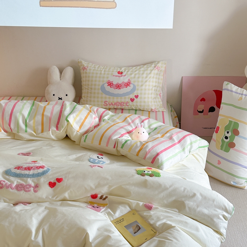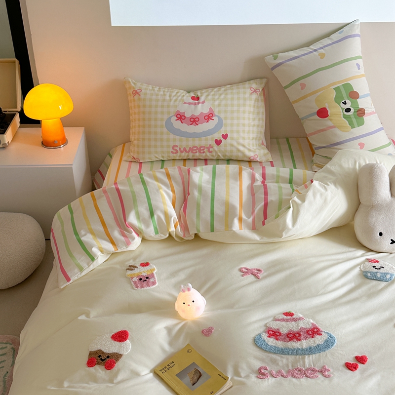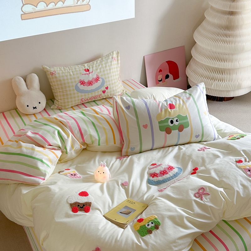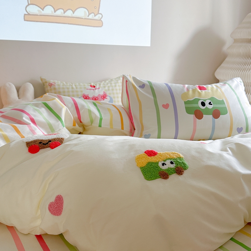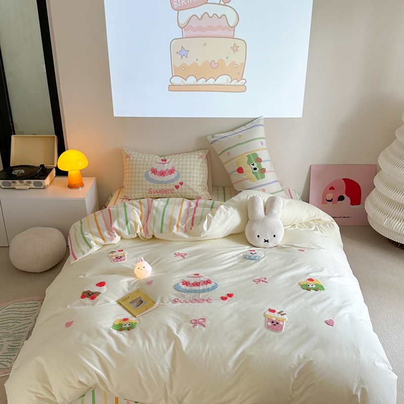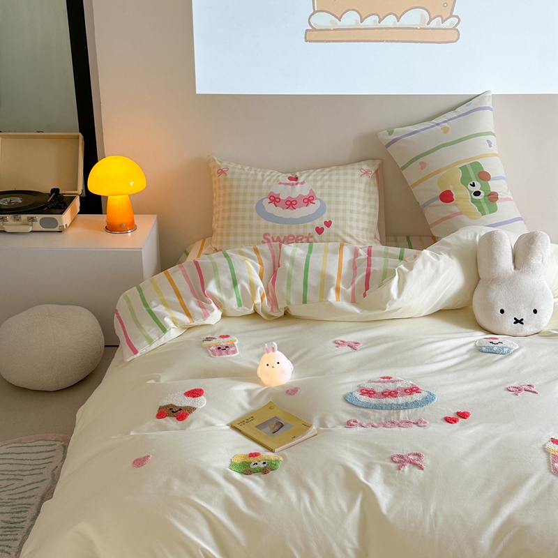 (总)柚子YOUTH 2025新款全棉双层纱贴布绣四件套,棒球熊猫,贝雷帽,冰淇淋小熊,格子玩偶,碎花小兔,小黑猫