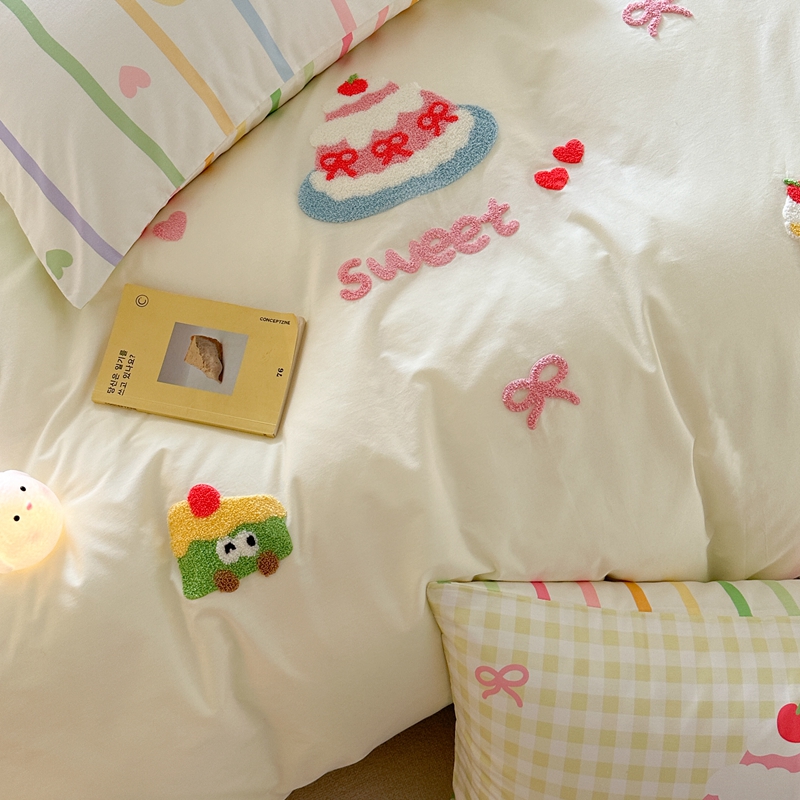(总)柚子YOUTH 2025新款全棉纯棉工艺款13070贴布绣四件套,爱心小象,毛绒小狗,蘑菇女孩,星星法师