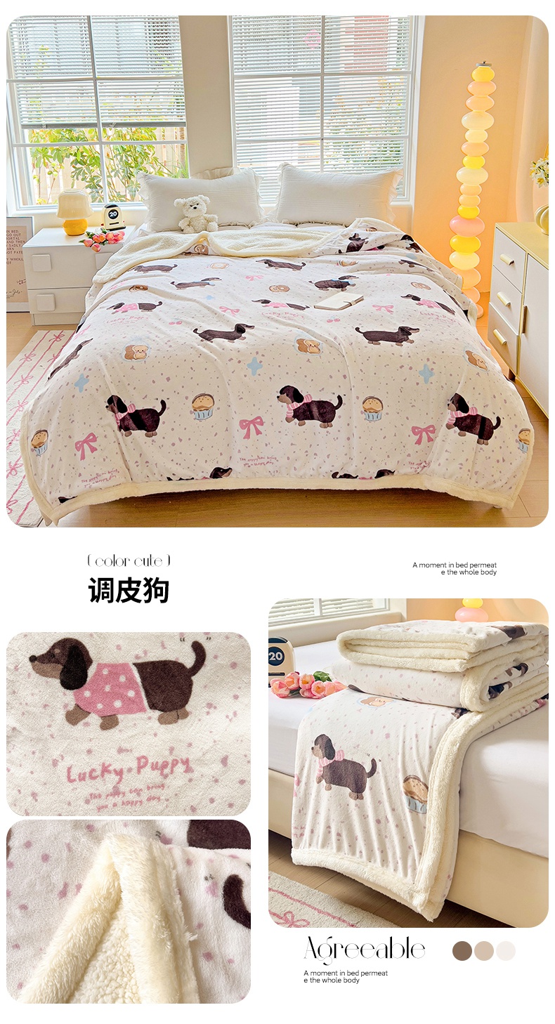 鑫喜莱家纺 2024新款牛奶绒羊羔绒盖毯毛毯毯子午睡毯 调皮狗