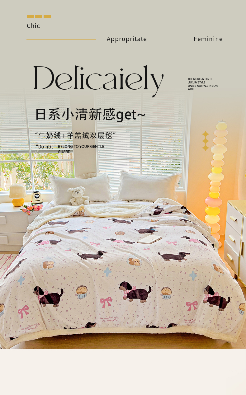 商品名称:鑫喜莱家纺 2024新款牛奶绒羊羔绒盖毯毛毯毯子午睡毯 调皮狗