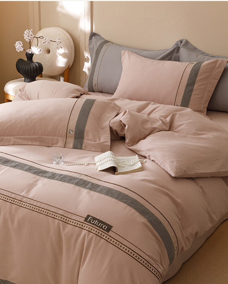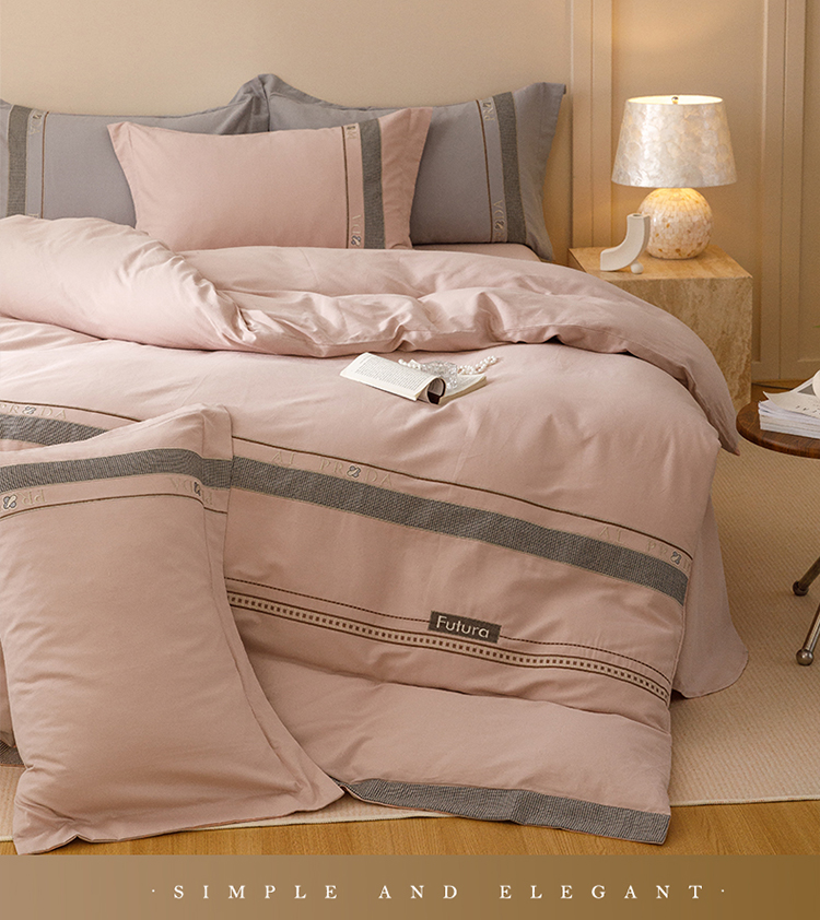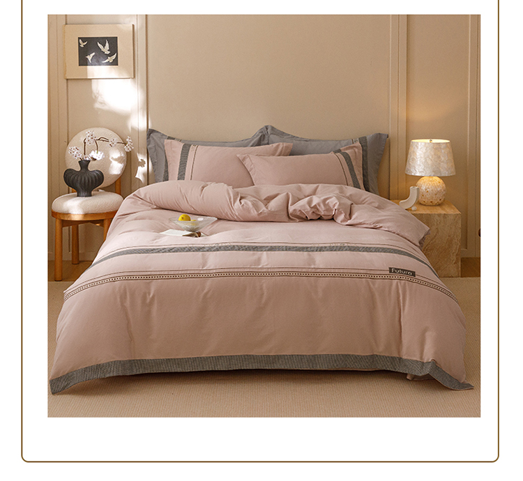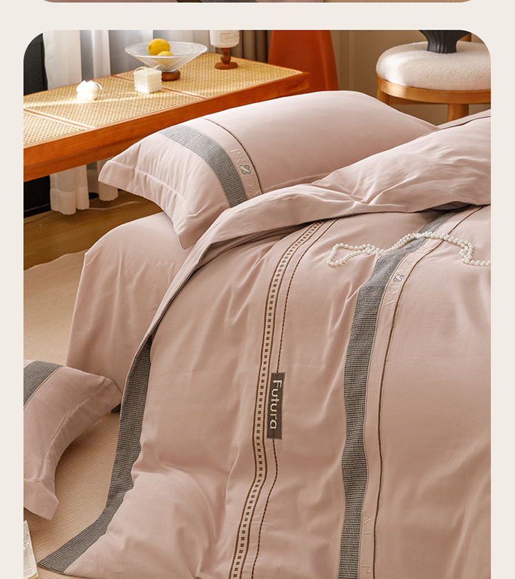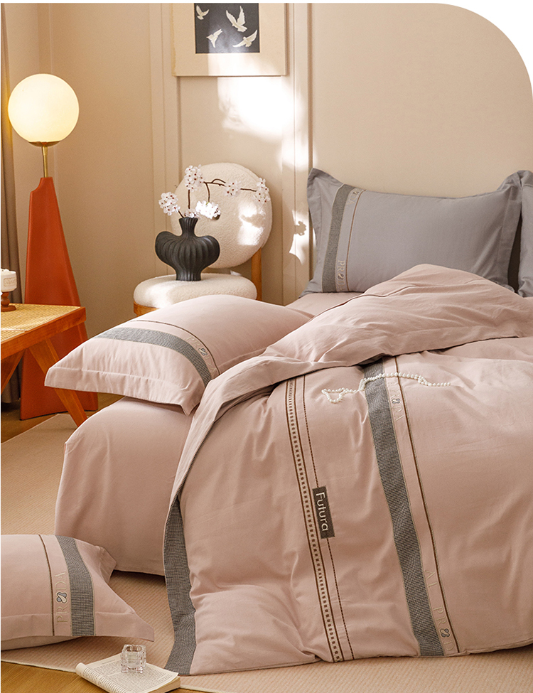 (总)艾莱家纺 2025新款A类100支长绒棉纯棉四件套-郁金香,郁金香-薄荷绿,郁金香-浅米驼,郁金香-珍珠粉