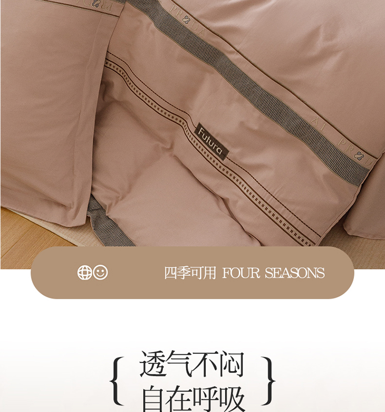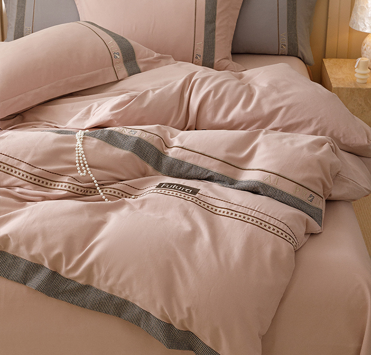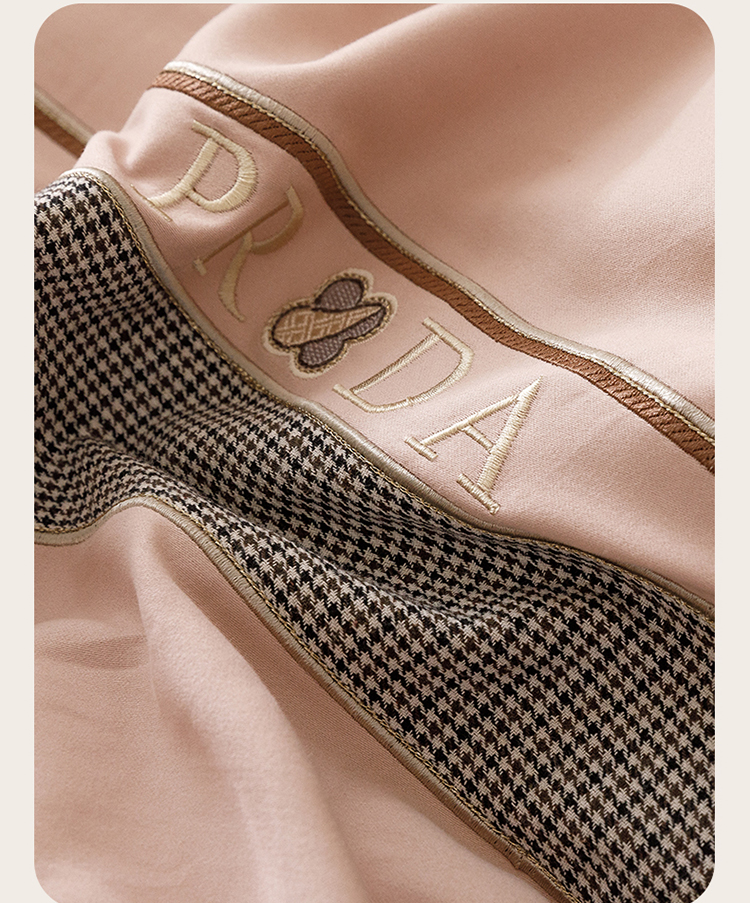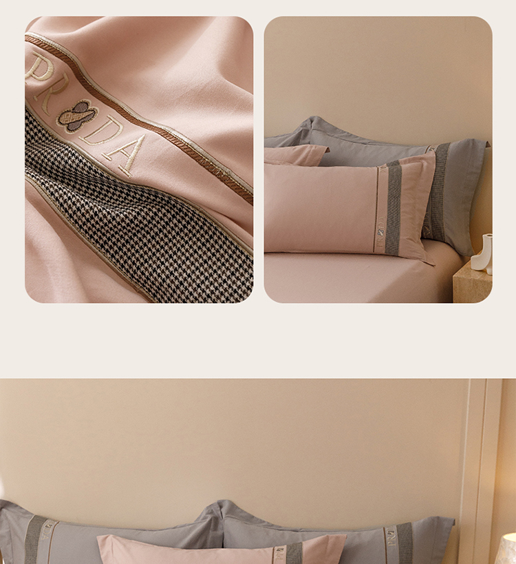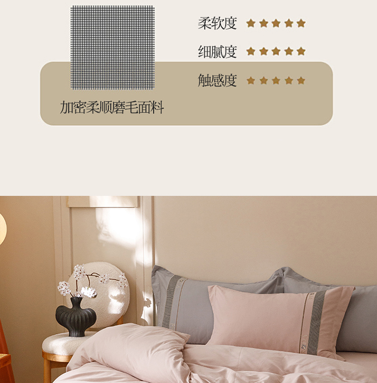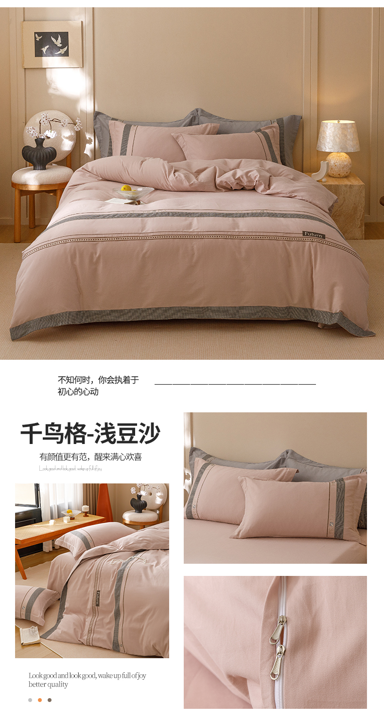 商品名称:2024新款A类云柔棉加密柔顺磨毛四件套千鸟格系列 千鸟格-浅豆沙