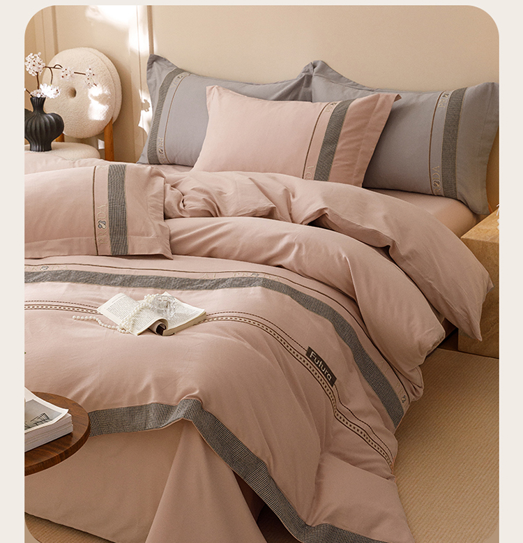 (总)艾莱家纺 2025新款A类水洗棉加厚绣花四件套-栀夏,栀夏-草莓奶粉,栀夏-格林棕,栀夏-暮光绿,栀夏-青叶紫,栀夏-银蓝
