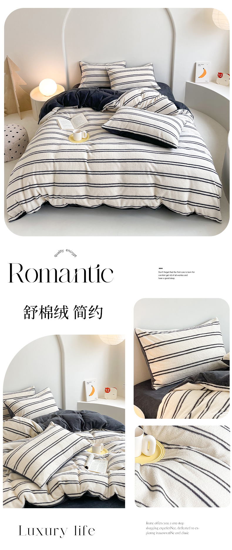 商品名称:山茶家纺 2024新款舒棉绒牛奶绒印花四件套 舒棉绒 简约