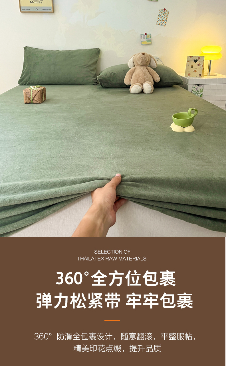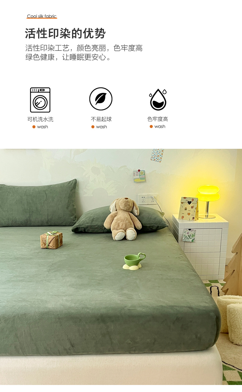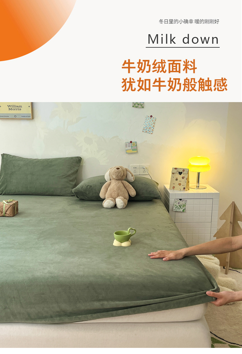 商品名称:2024新款秋冬新品牛奶绒印花单床笠 墨绿