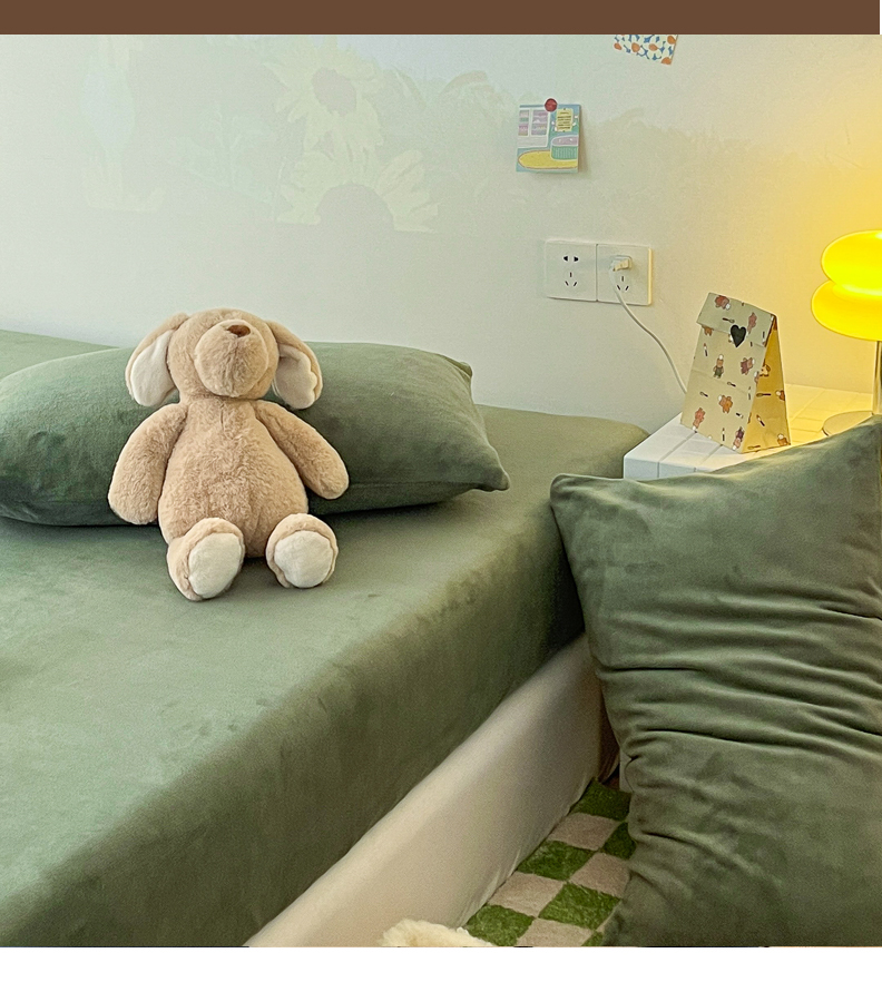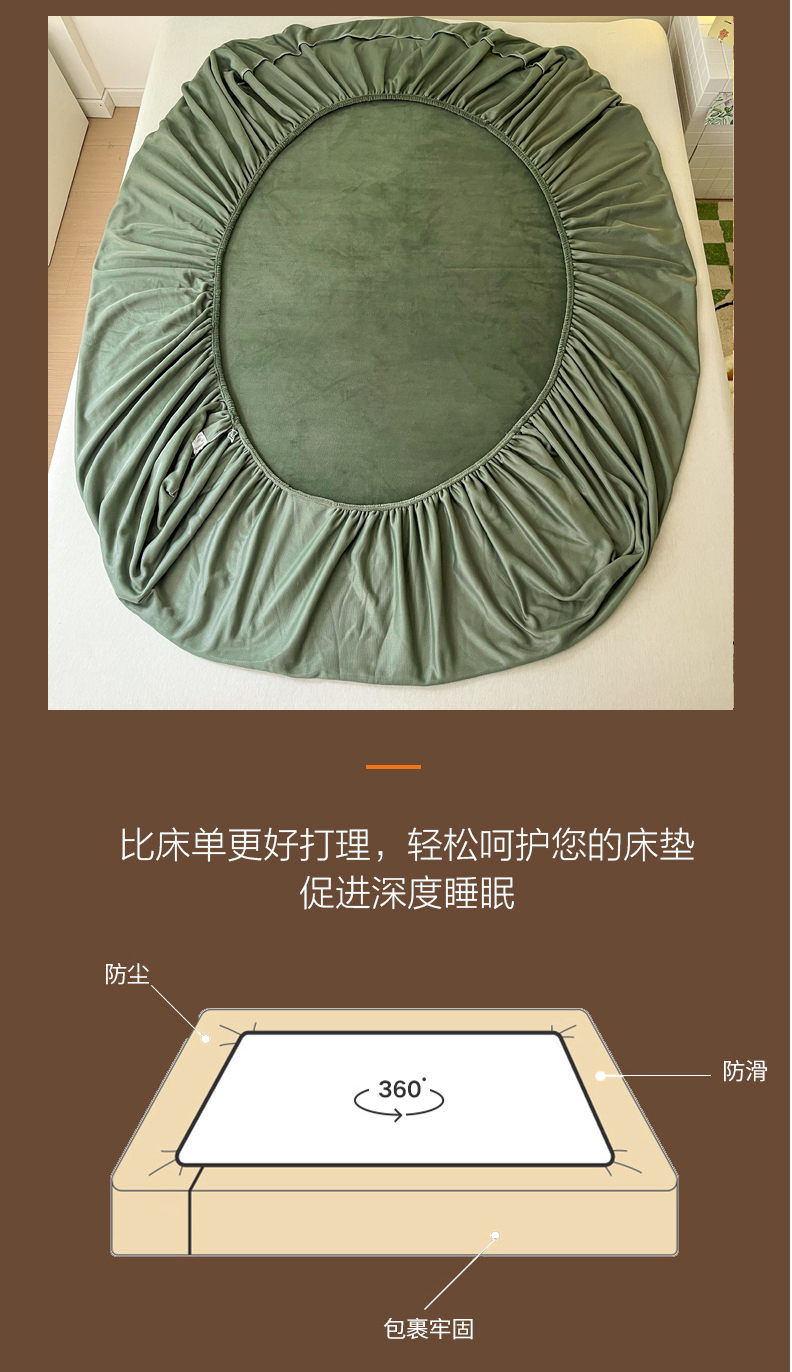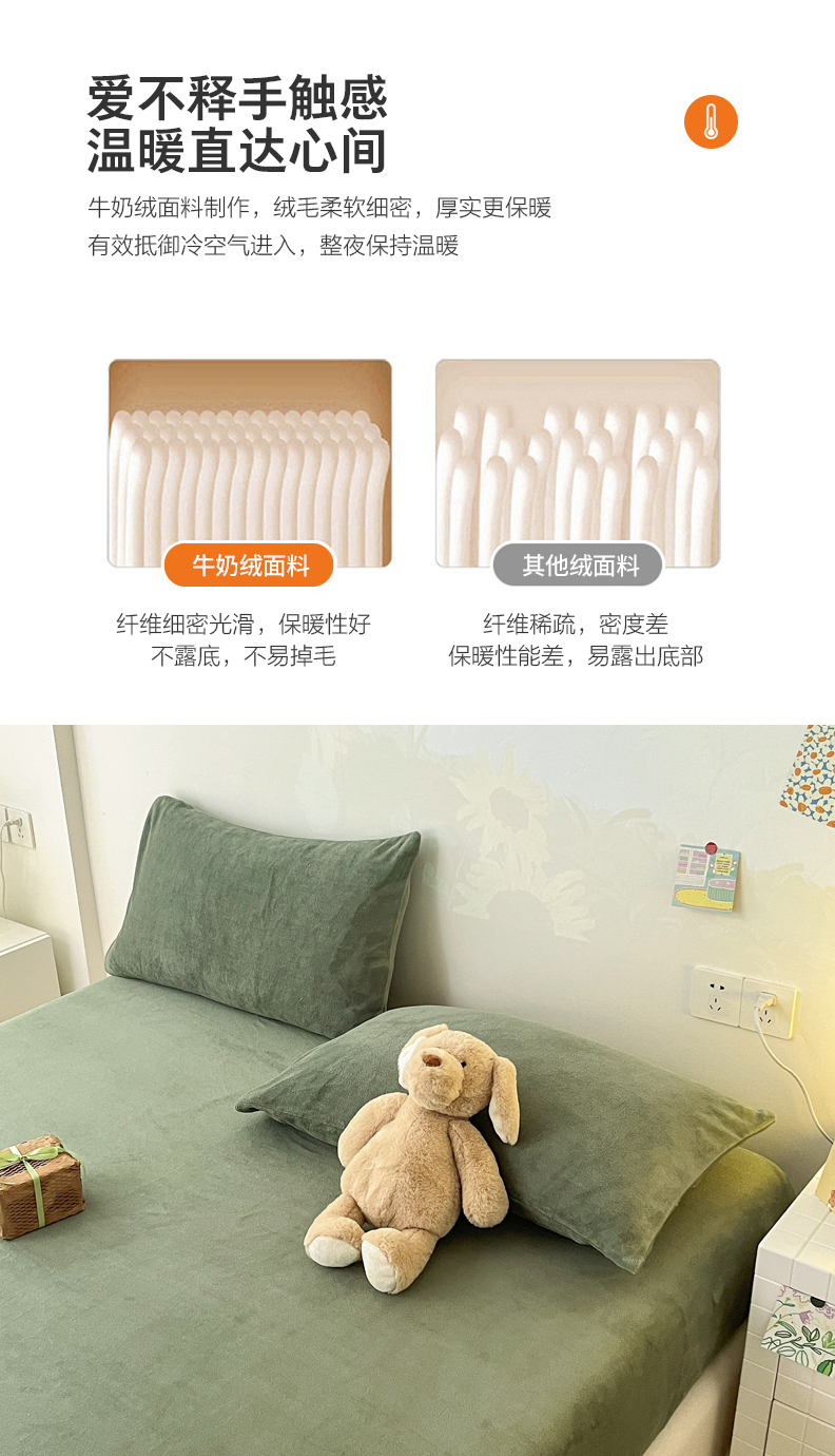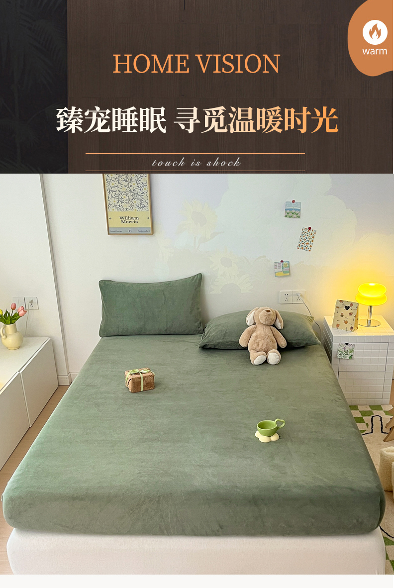 商品名称:2024新款秋冬新品牛奶绒印花单床笠 墨绿