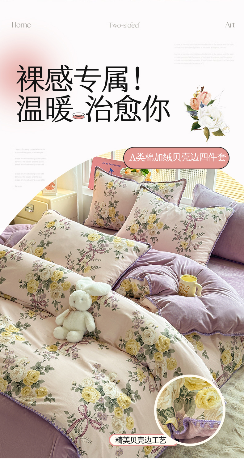 当前位置: 91家纺网 > 商品网购 > 床品套件 > 四件套 > 牛奶绒四件套 > 2025新款三角针贝壳边棉加牛奶绒工艺款四件套 优雅恋人