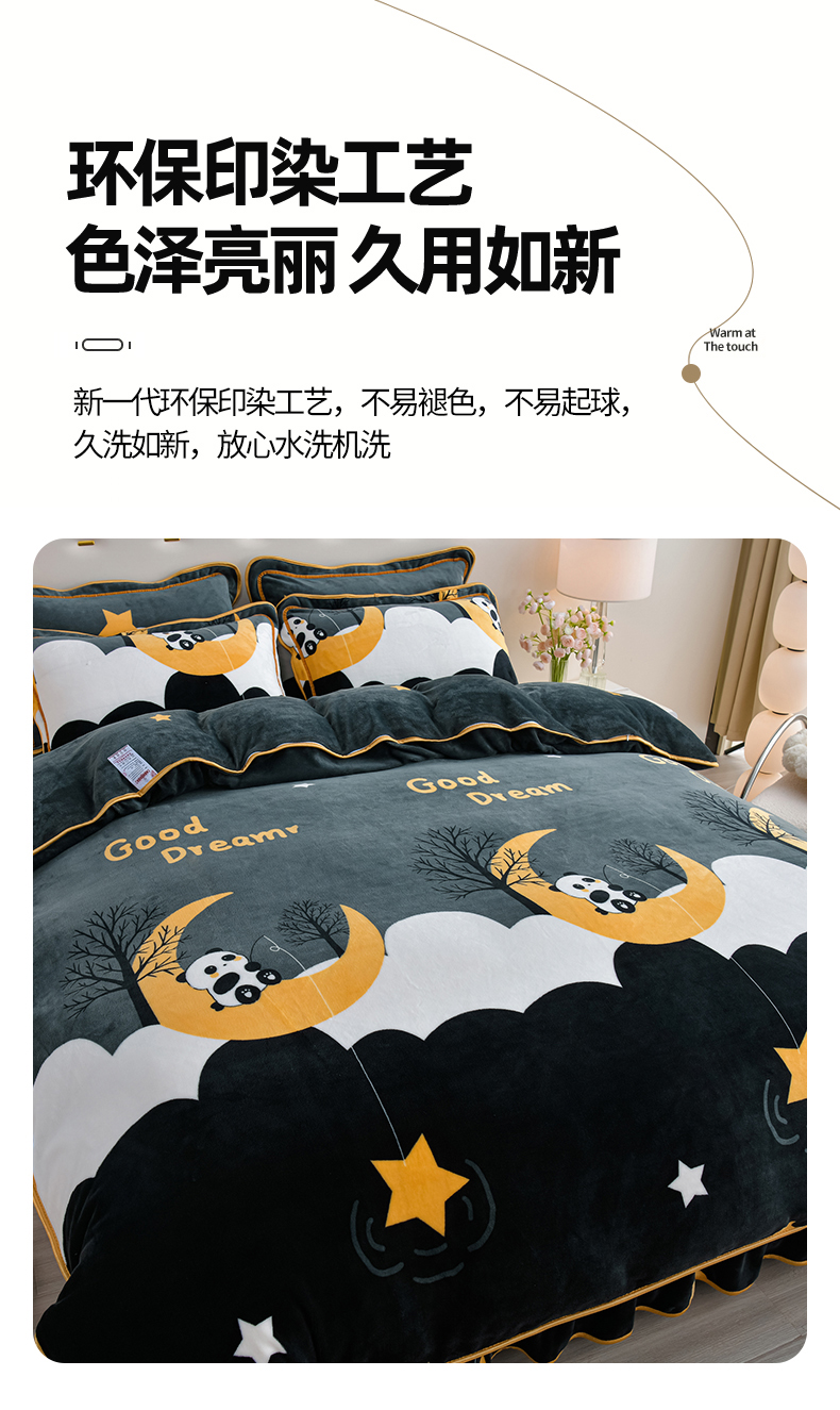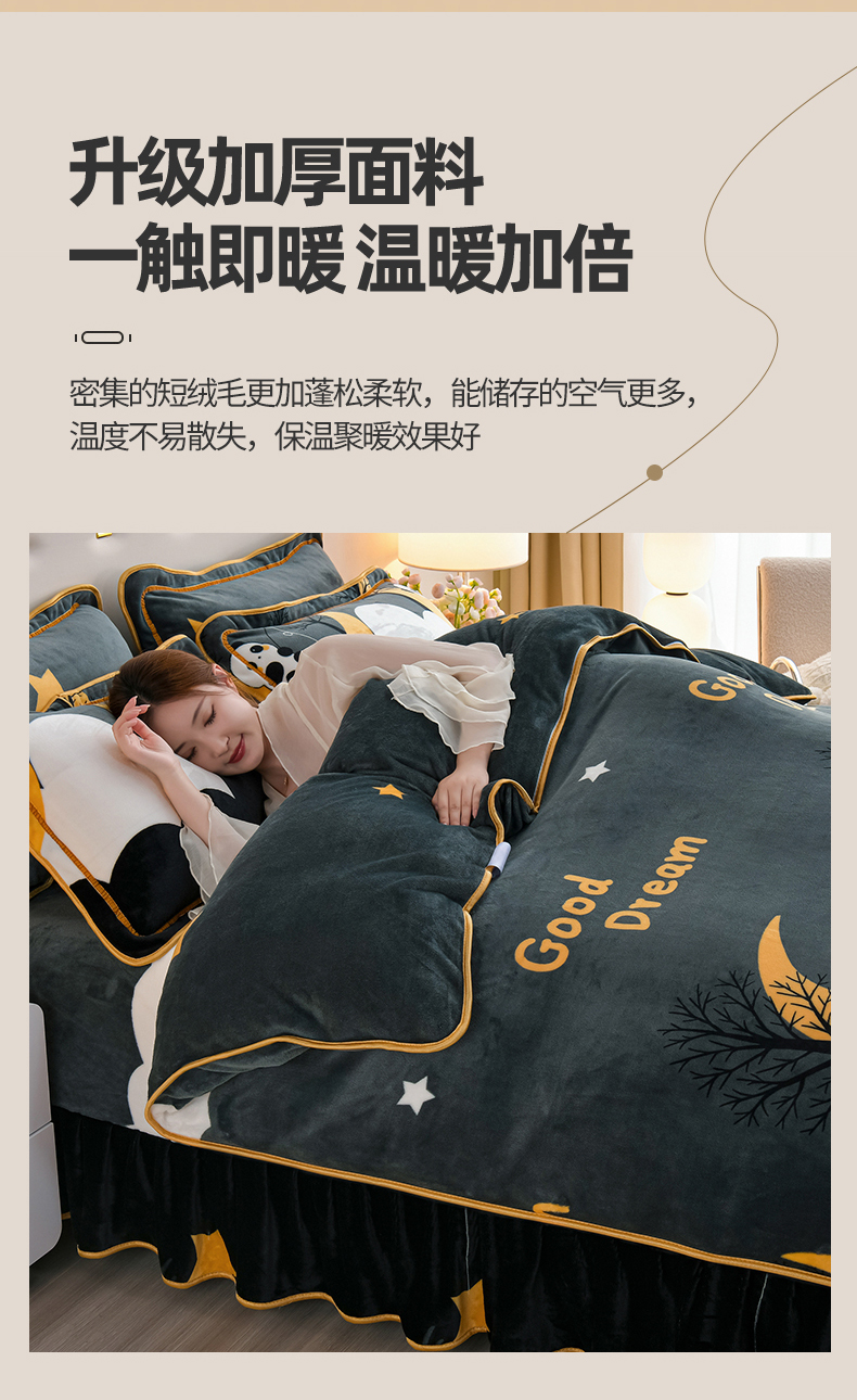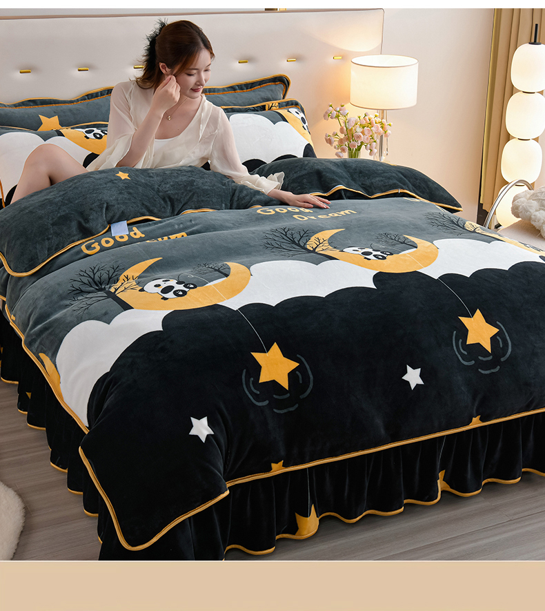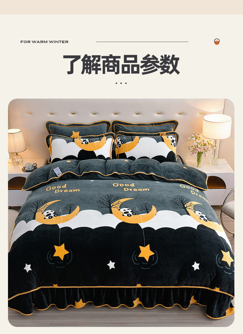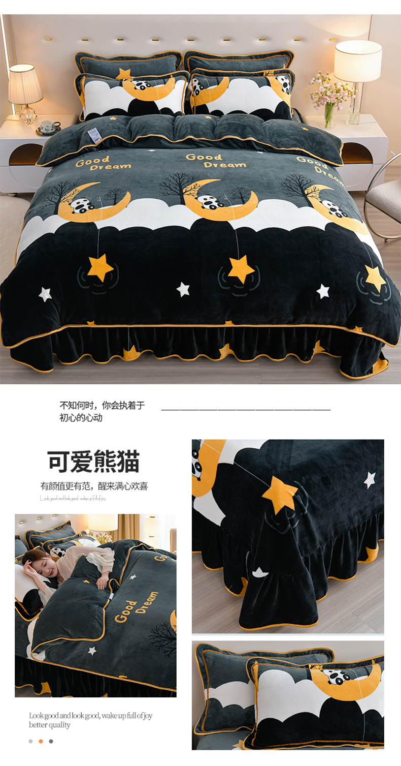 当前位置: 91家纺网 > 商品网购 > 床品套件 > 四件套 > 牛奶绒四件套 > 阿亮家居 2024新款8.5斤保暖牛奶绒金貂绒床裙款四件套 可爱熊猫