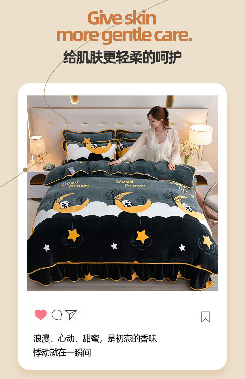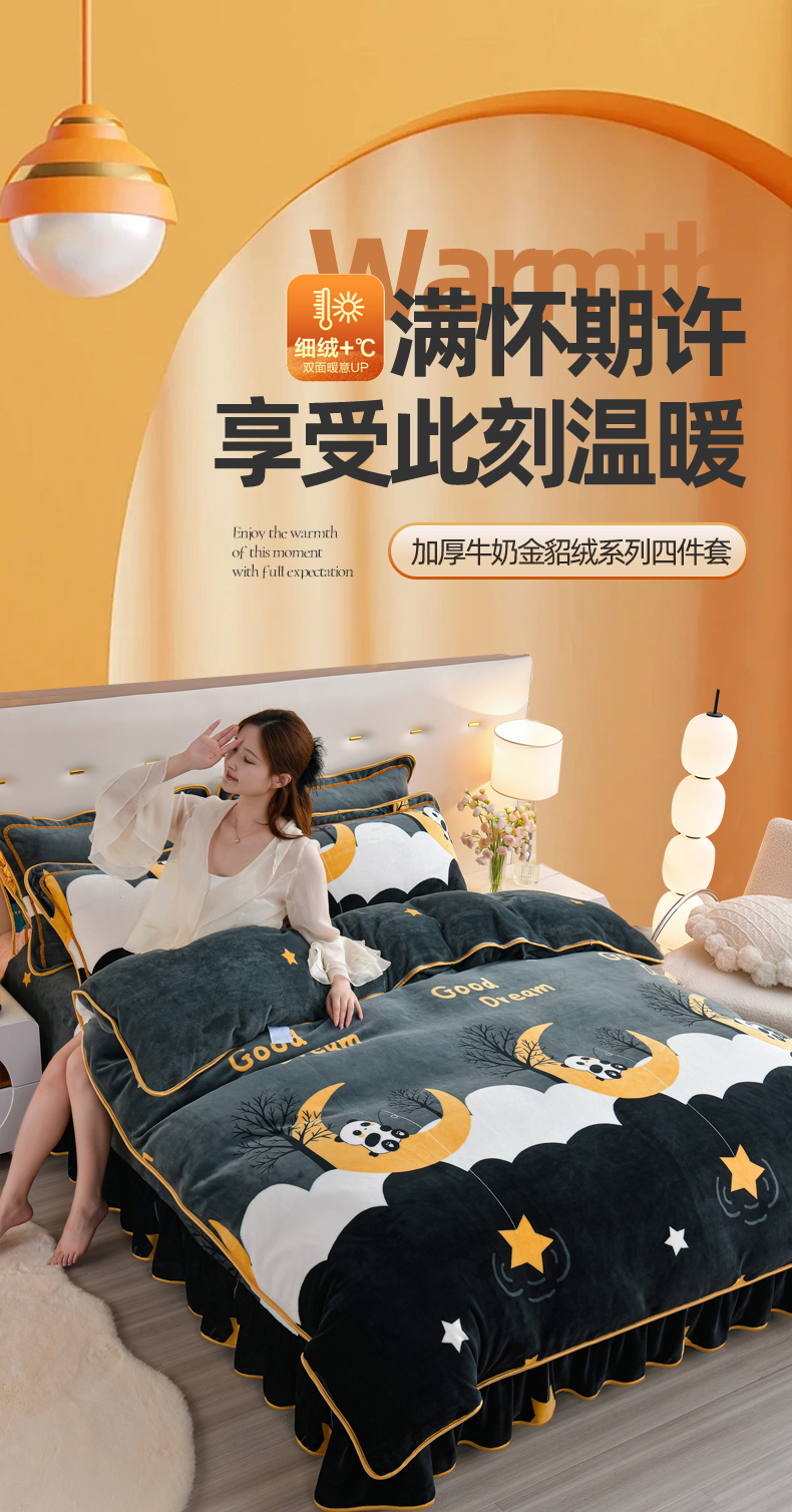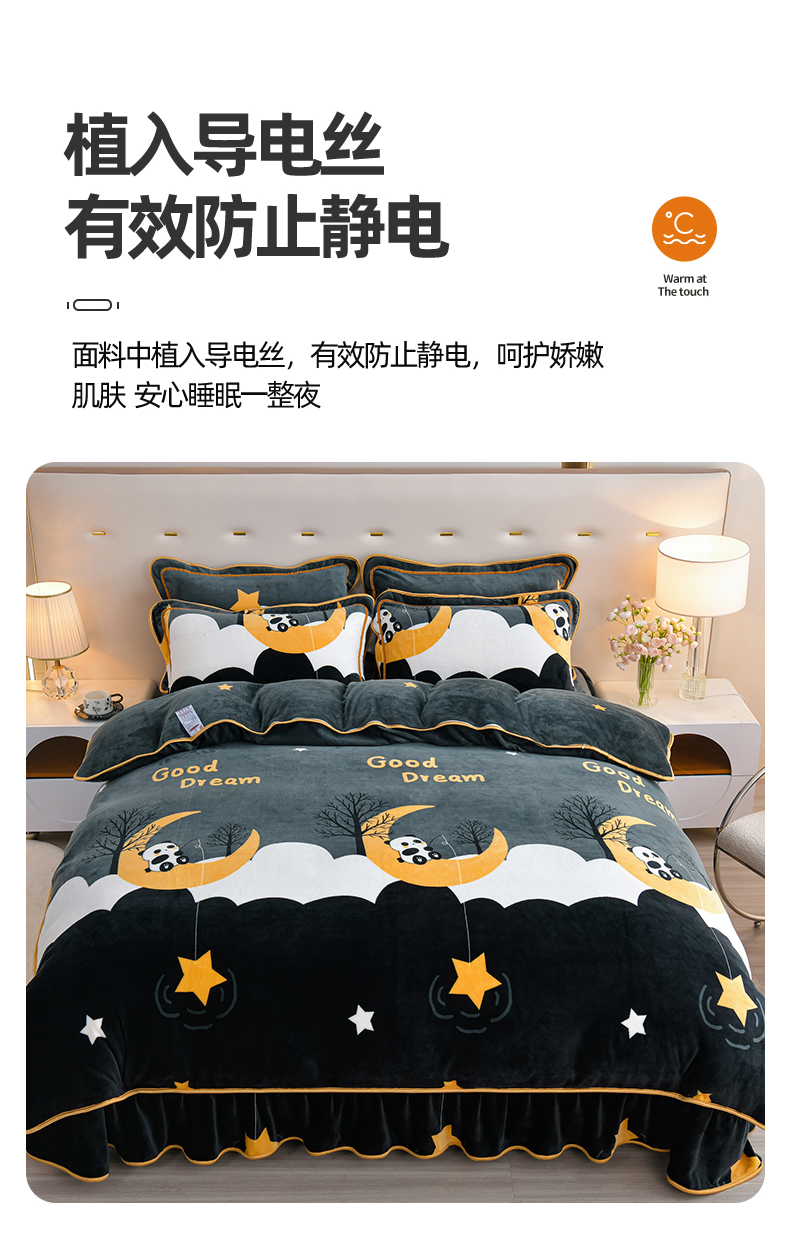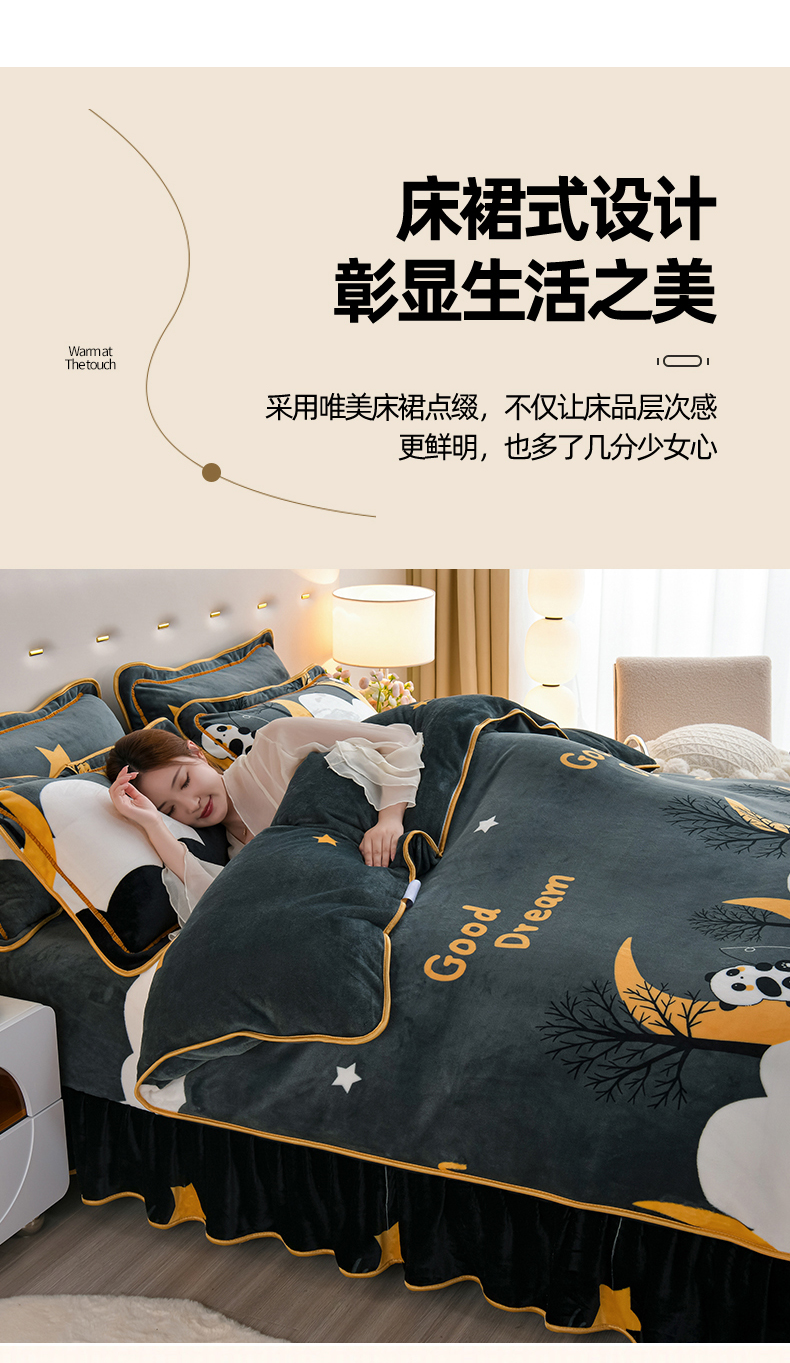 当前位置: 91家纺网 > 商品网购 > 床品套件 > 四件套 > 牛奶绒四件套 > 阿亮家居 2024新款8.5斤保暖牛奶绒金貂绒床裙款四件套 可爱熊猫