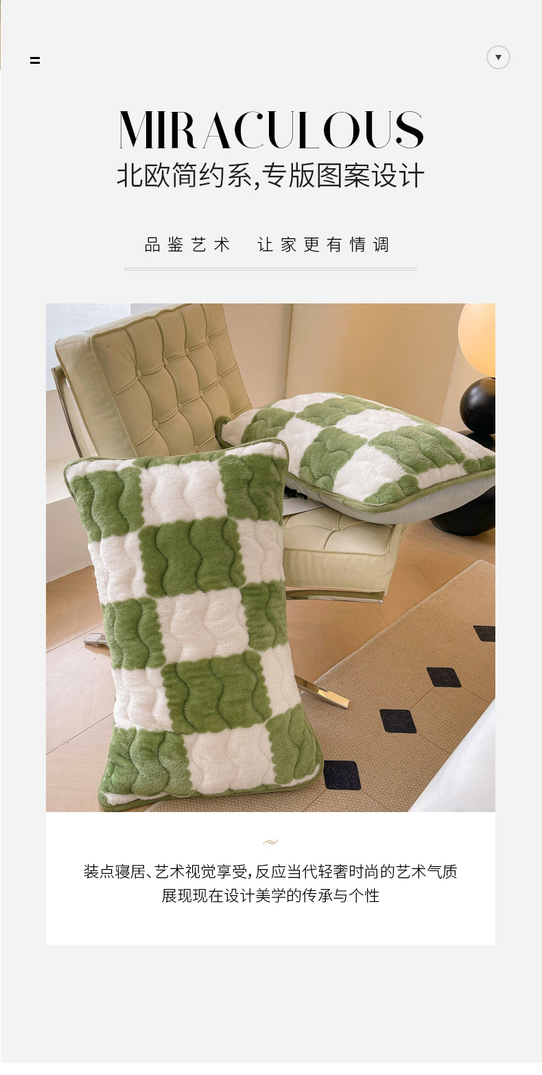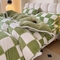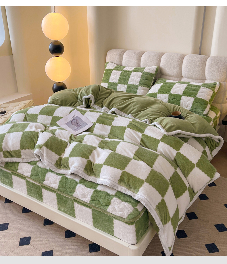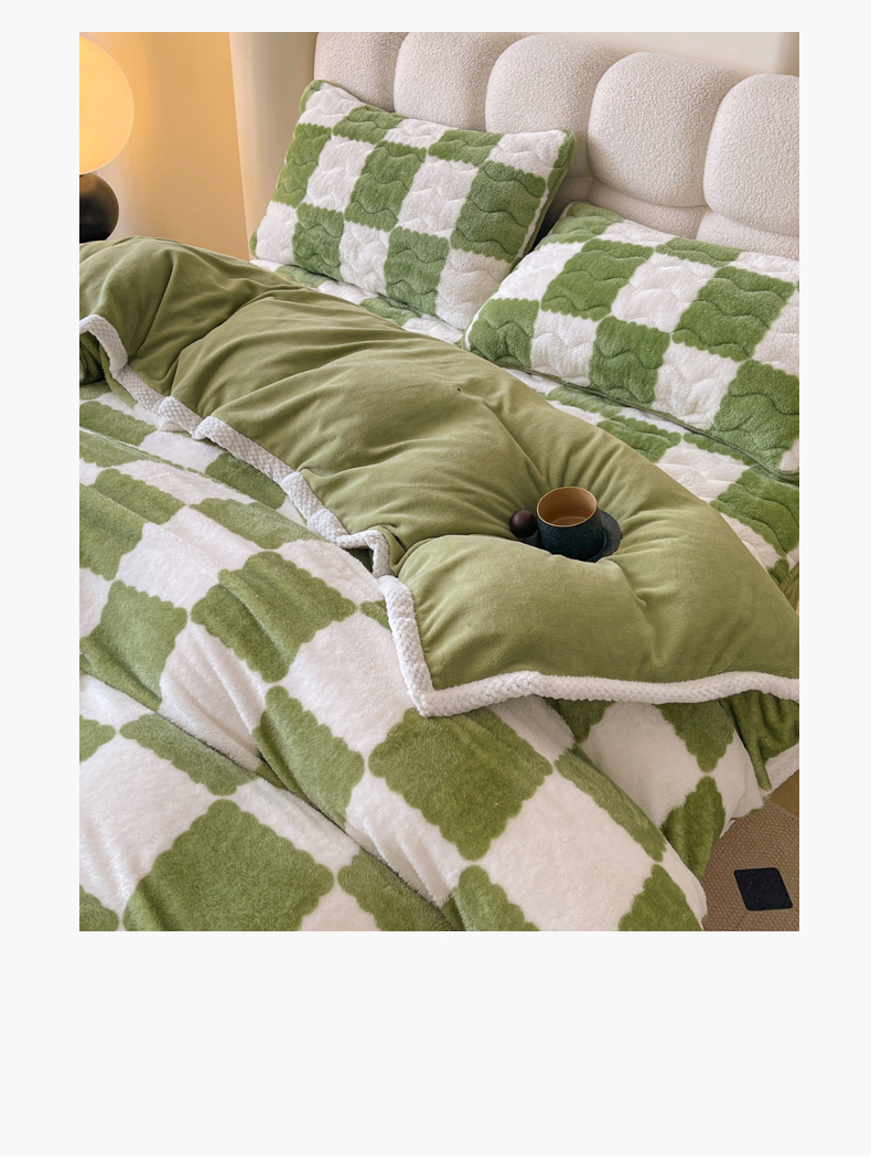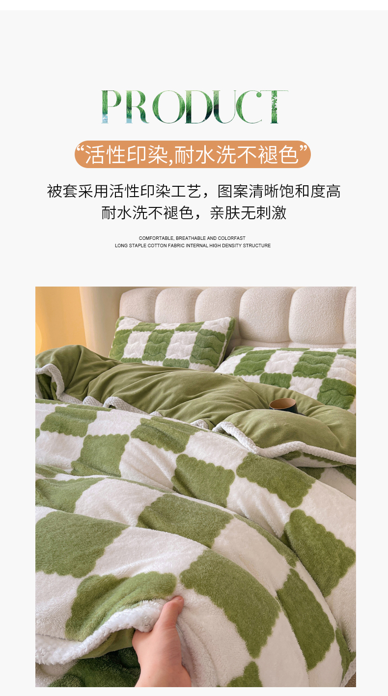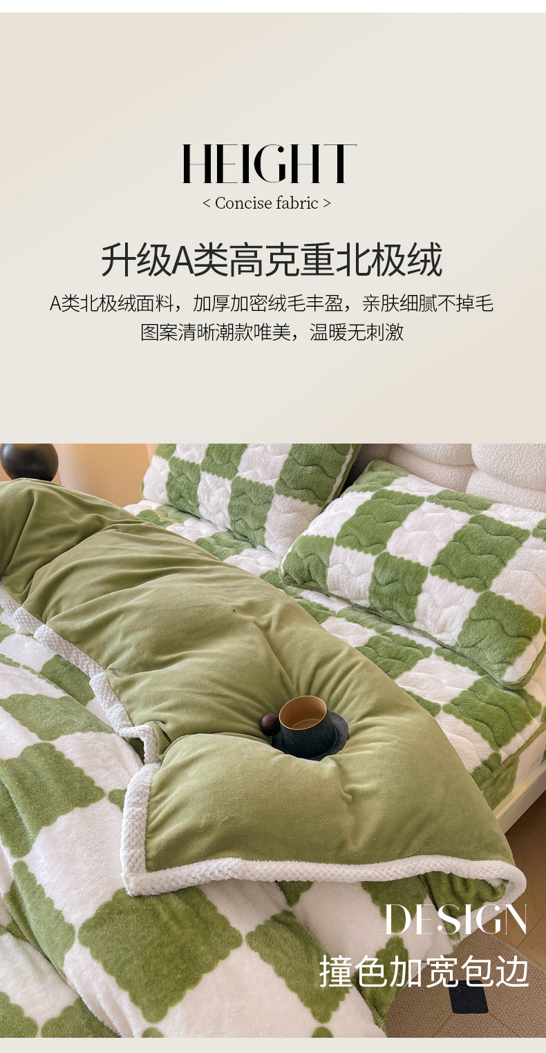商品名称:2024新款A类北极绒格子-条纹系列宽包边加厚被套(暖光图) 棋盘格-豆绿