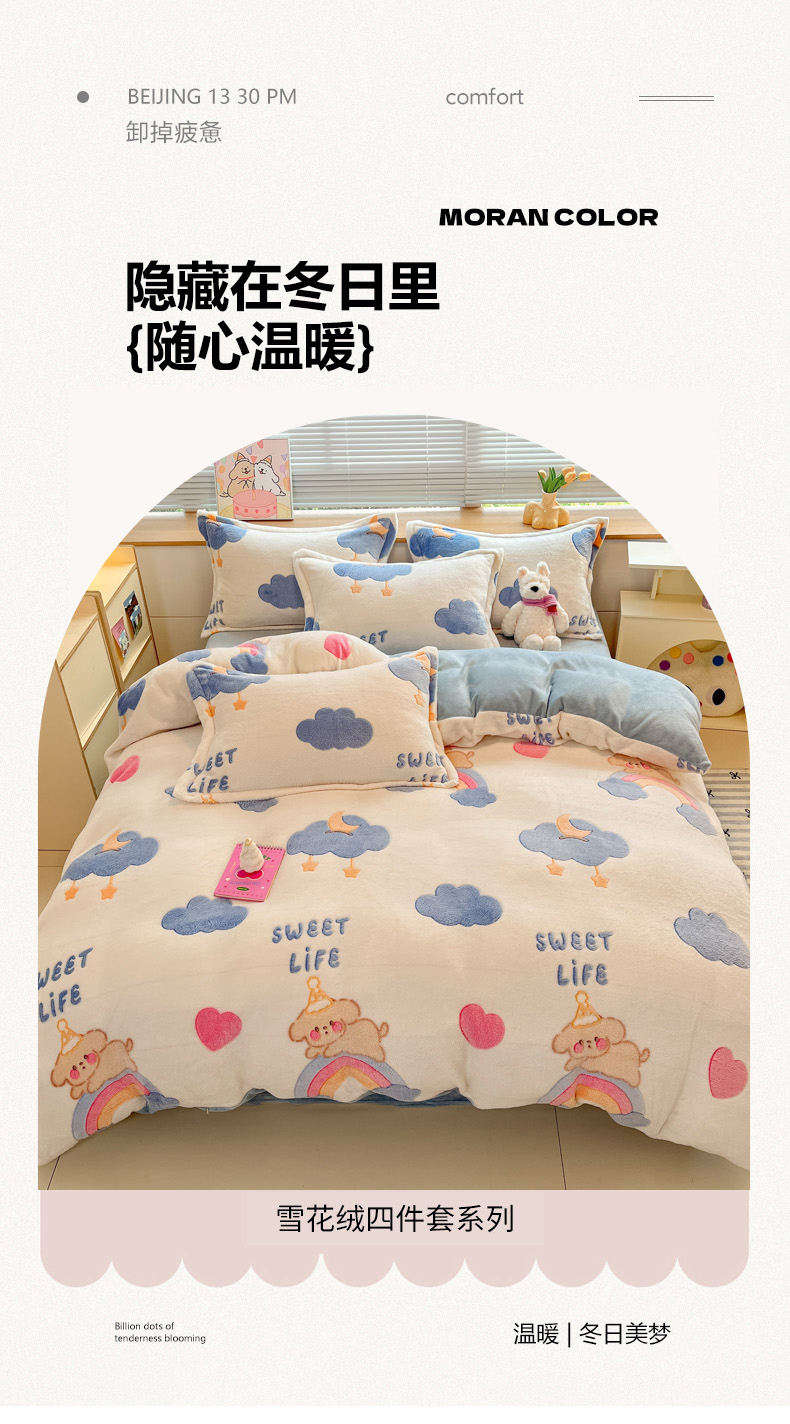 (总)慕尚家纺 2025新款豆豆绒刺绣四件套,大耳狗 白蓝,玫瑰 白粉