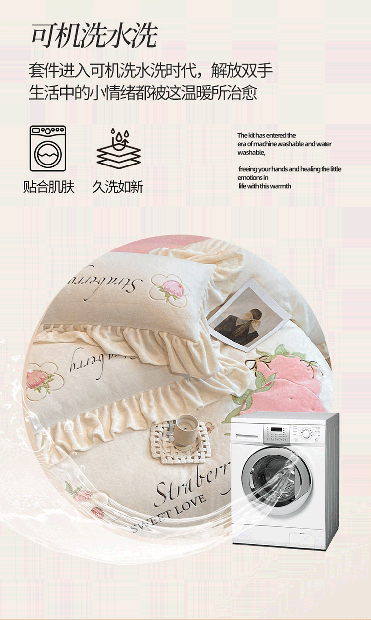 商品名称:爱家(原缔乐家纺) 牛奶绒贴布绣四件套-甜心草莓 甜心草莓-奶昔白
