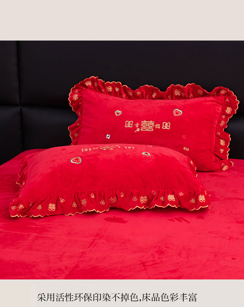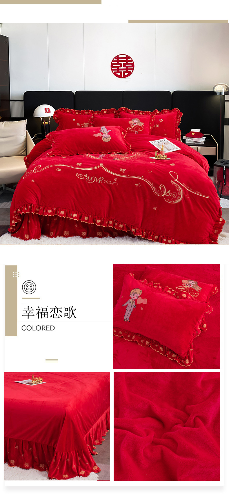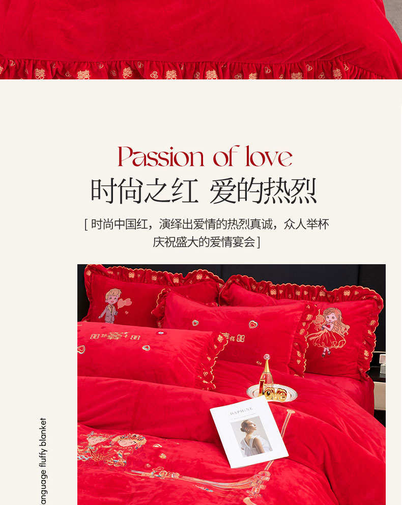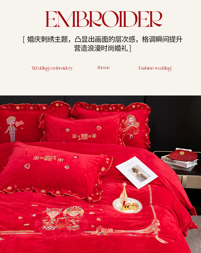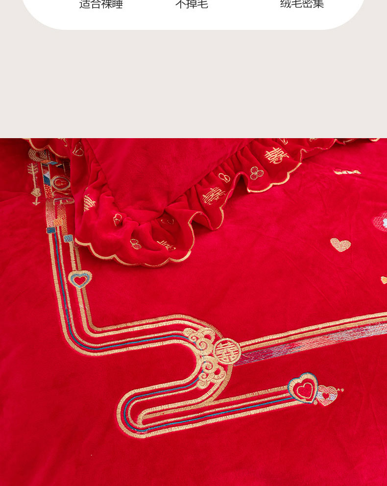 蒂爵 全棉纯棉抗静电宝宝绒婚庆绣花四件套 喜庆福缘