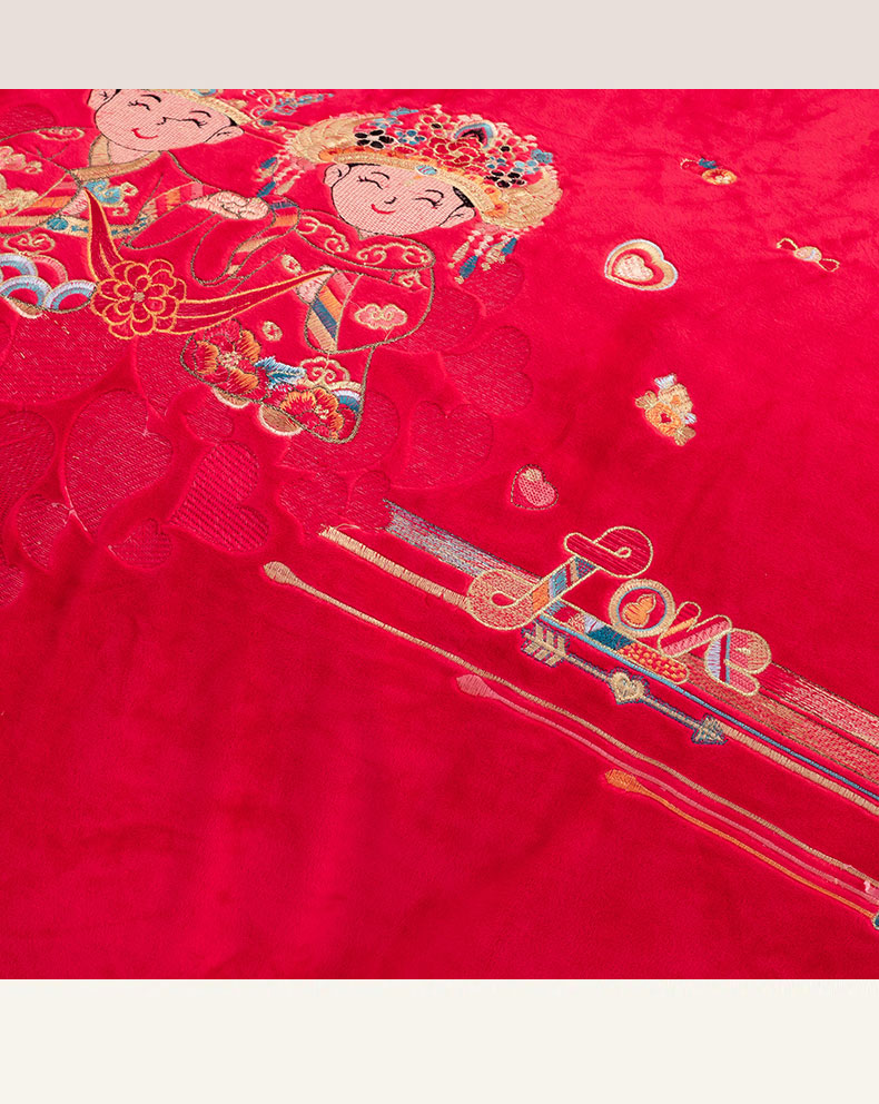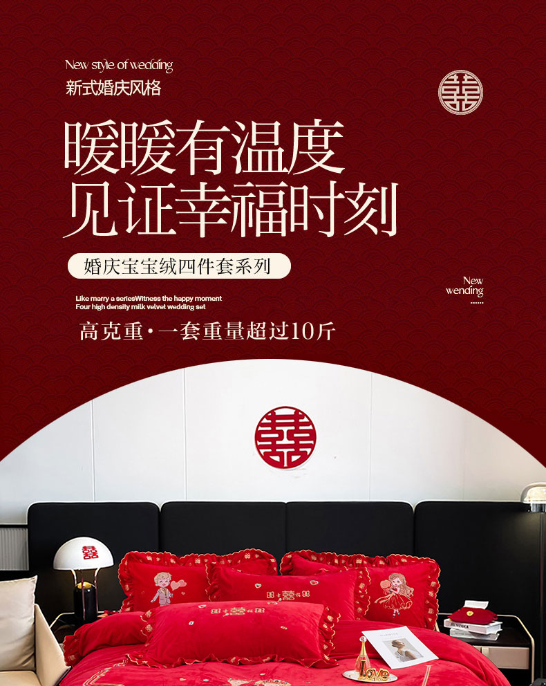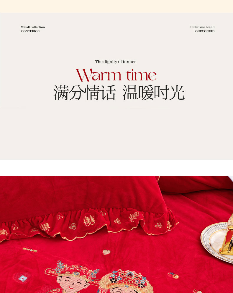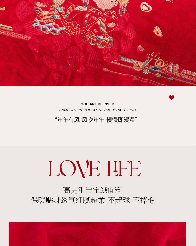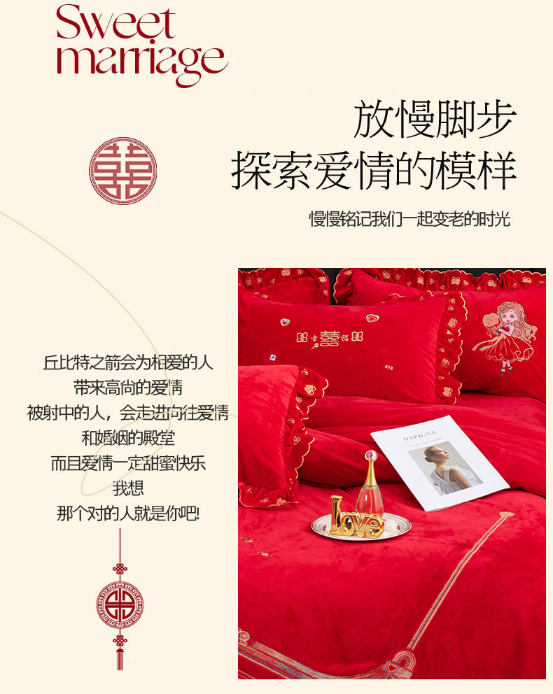 蒂爵 全棉纯棉抗静电宝宝绒婚庆绣花四件套 喜庆福缘