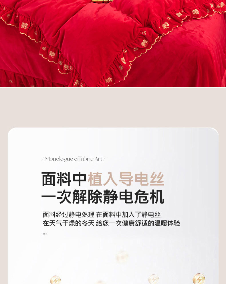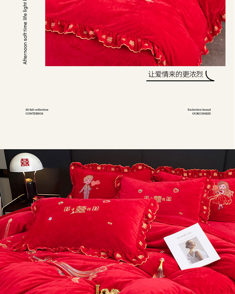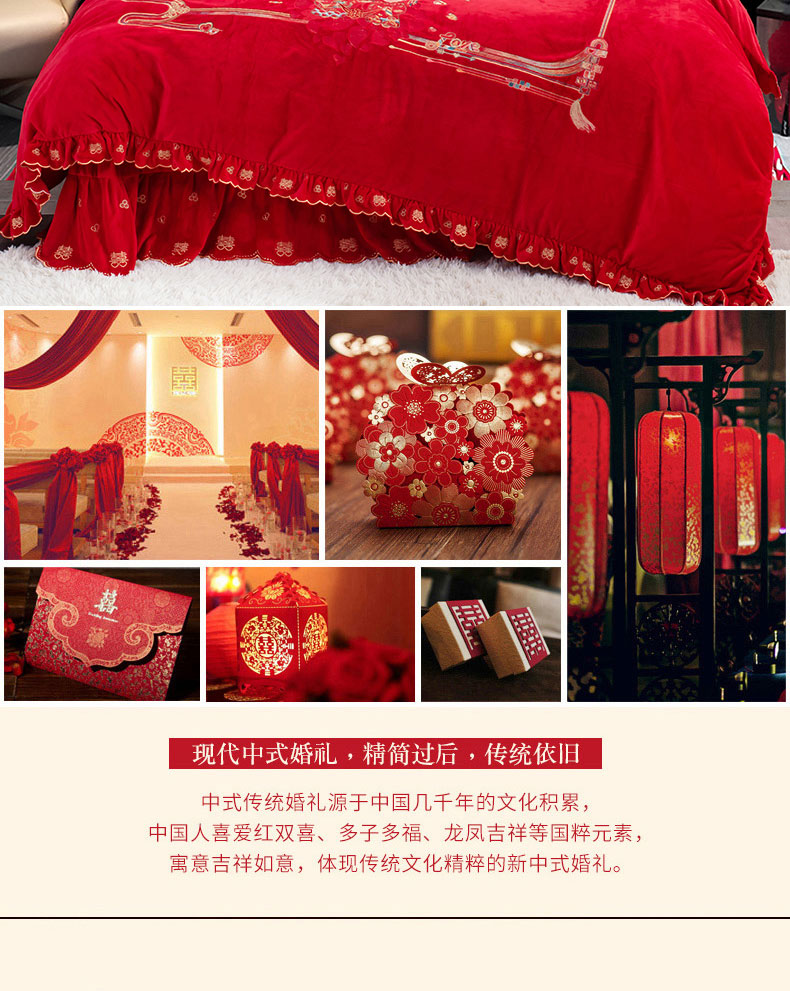 商品名称:蒂爵 全棉纯棉抗静电宝宝绒婚庆绣花四件套 喜庆福缘