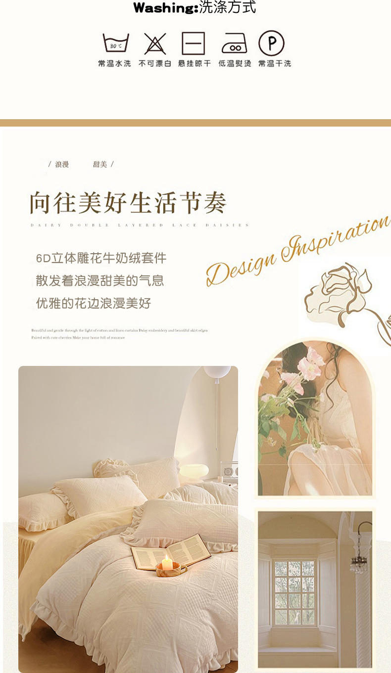 商品名称:2024新款加厚牛奶绒韩版雕花四件套风格1(温馨) 卡罗琳