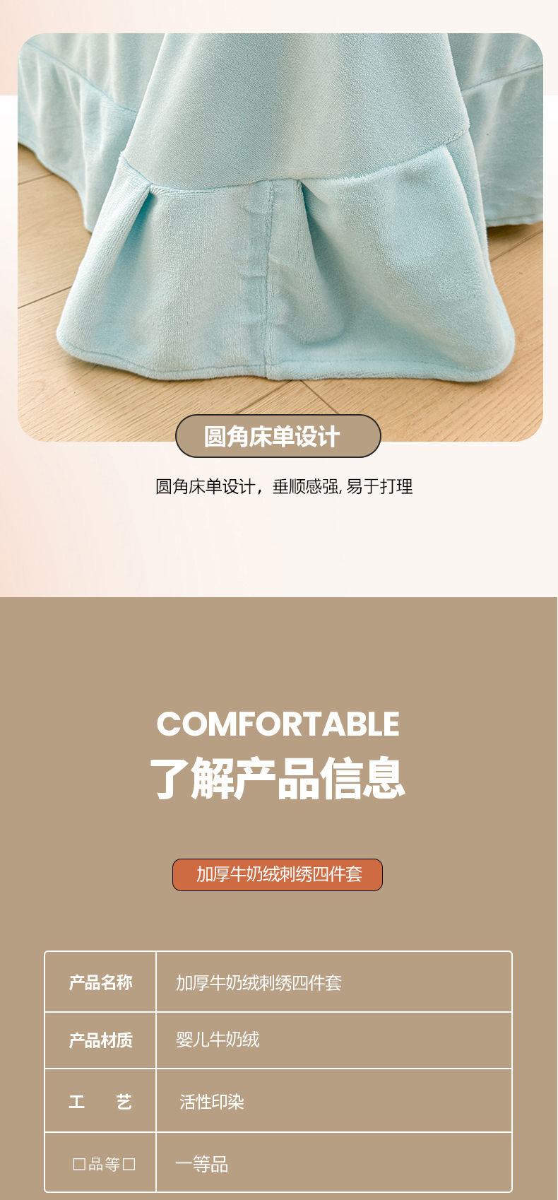 (总)金窝窝家纺 2024新款重工刺绣280克A类婴儿牛奶绒刺绣四件套,向阳花开—粉,向阳花开—红,向阳花开—蓝,向阳花开—绿