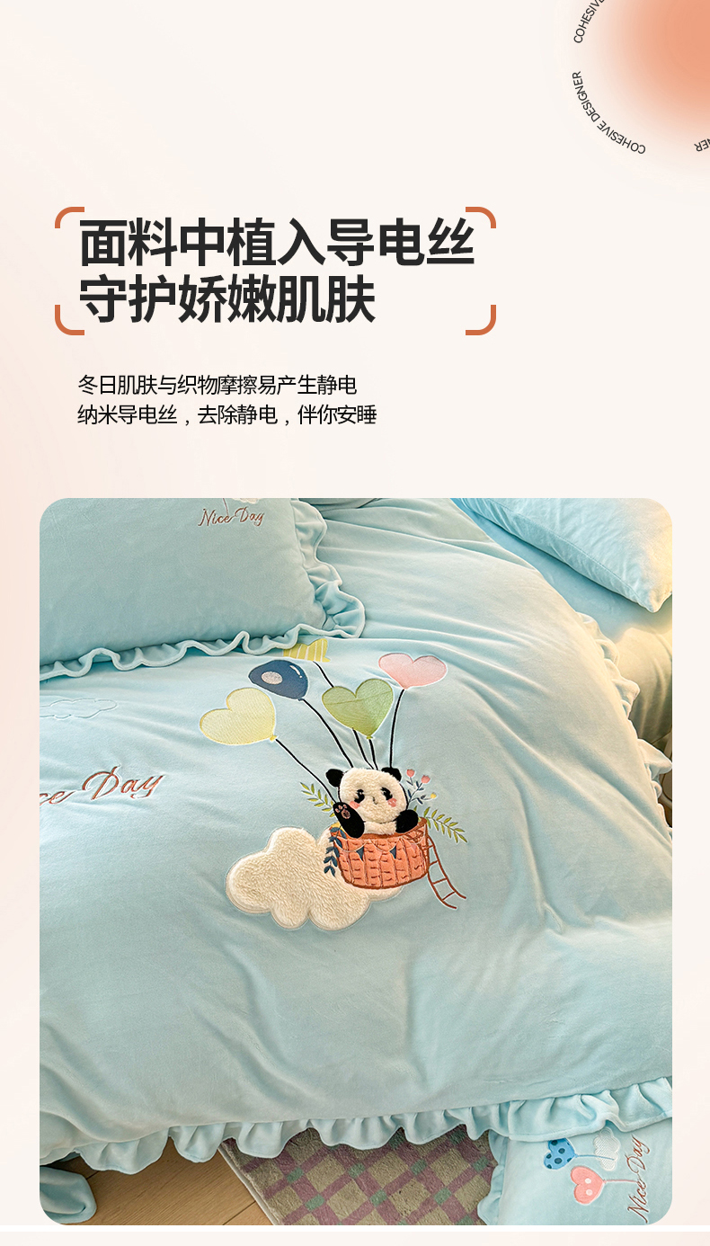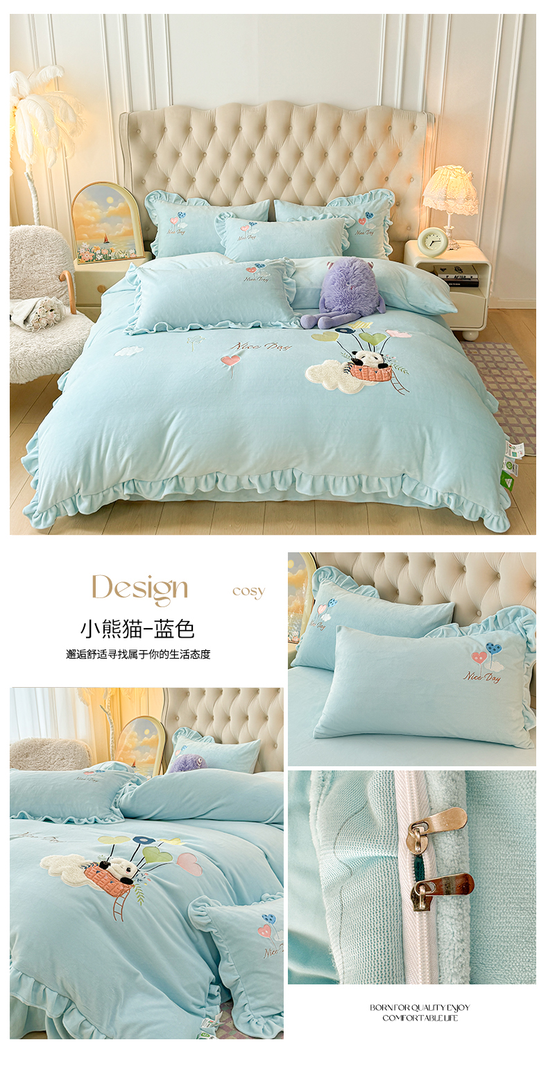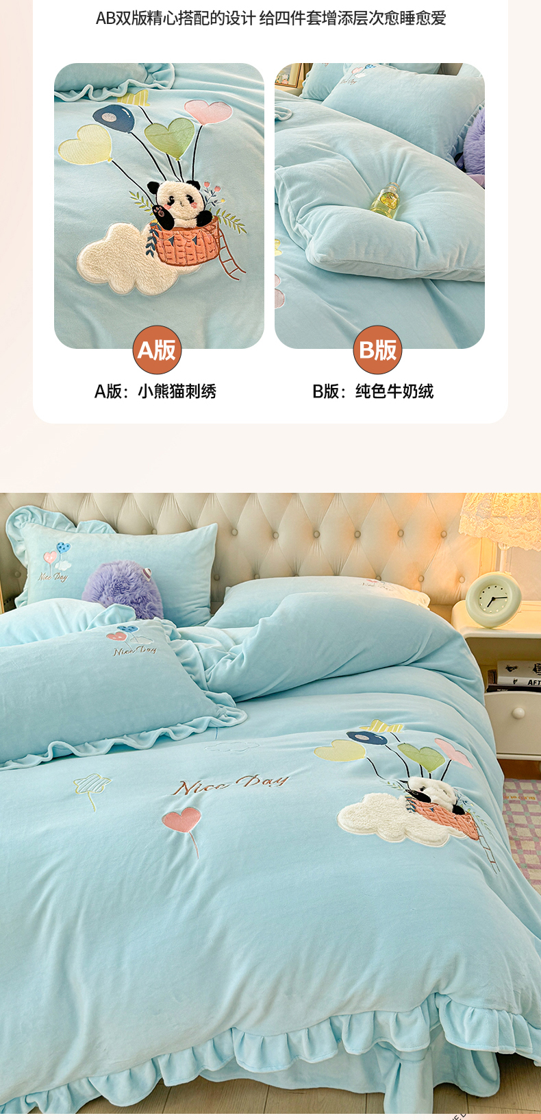 商品名称:金窝窝家纺 2024新款全消光牛奶绒四件套-小熊猫 小熊猫-蓝色