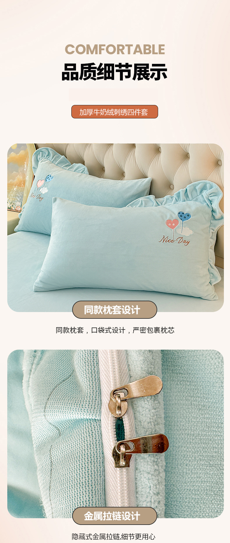 总金窝窝家纺2024重工刺绣280克A类婴儿牛奶绒刺绣四件套系列-美好生活,美好生活—粉