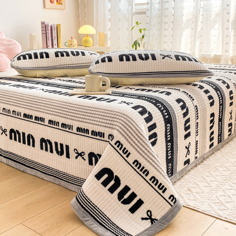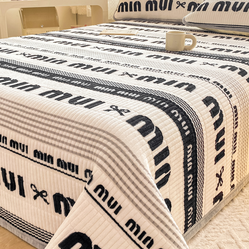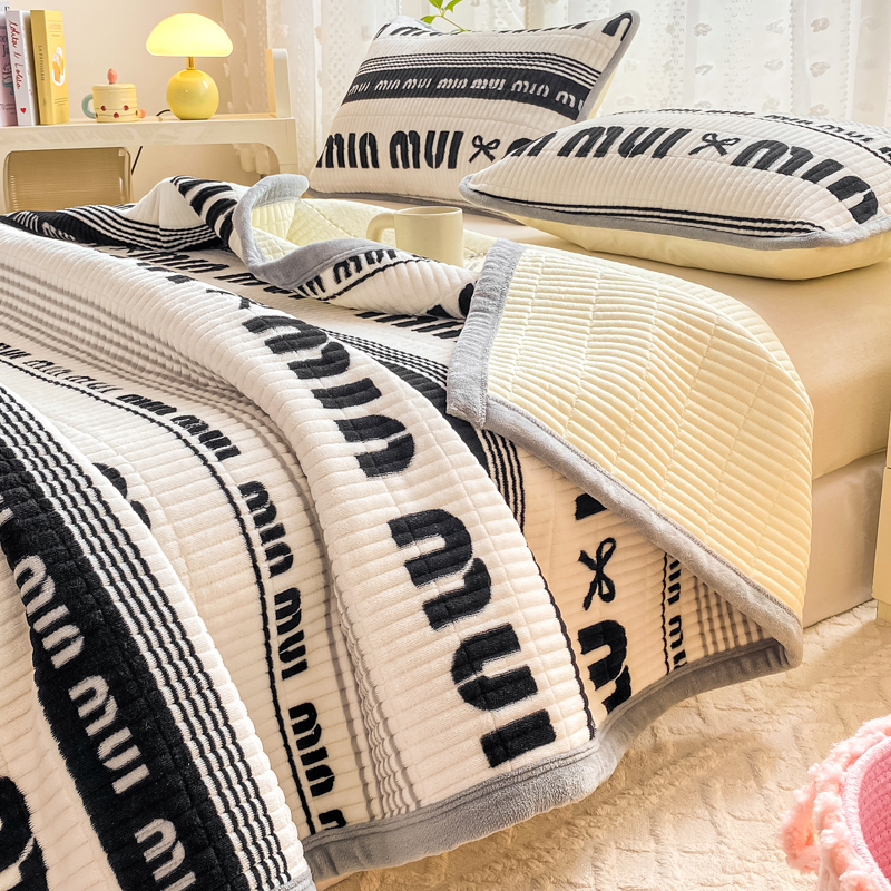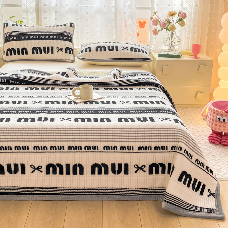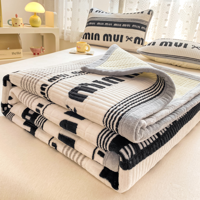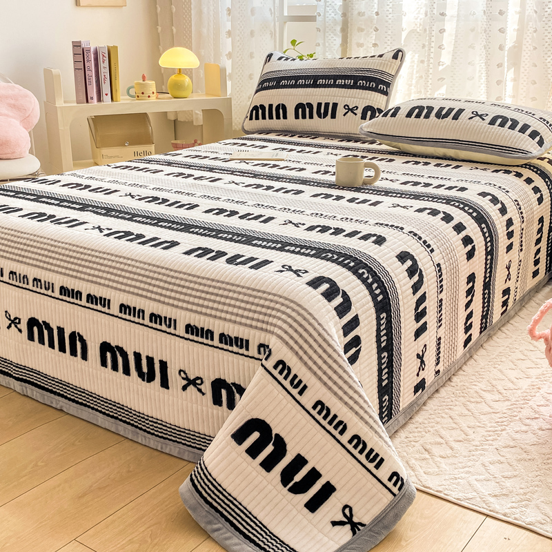 家喜爱 2024新款A类牛奶绒夹棉加厚直边软床盖 迷你字母