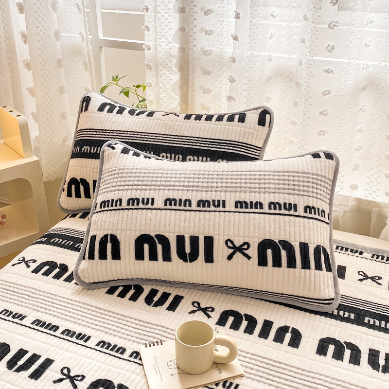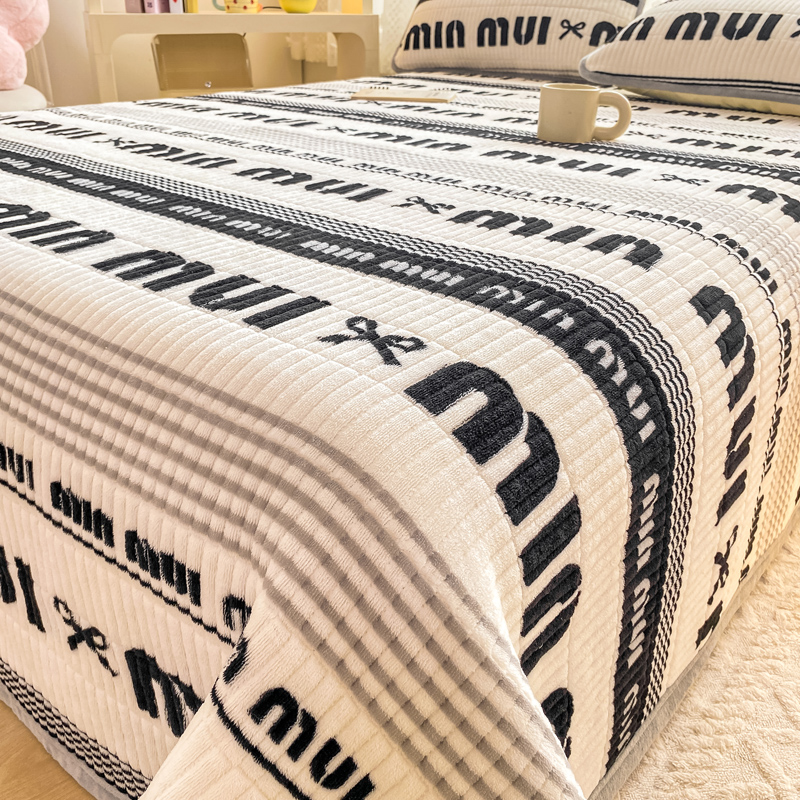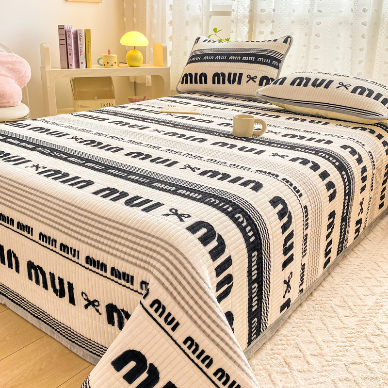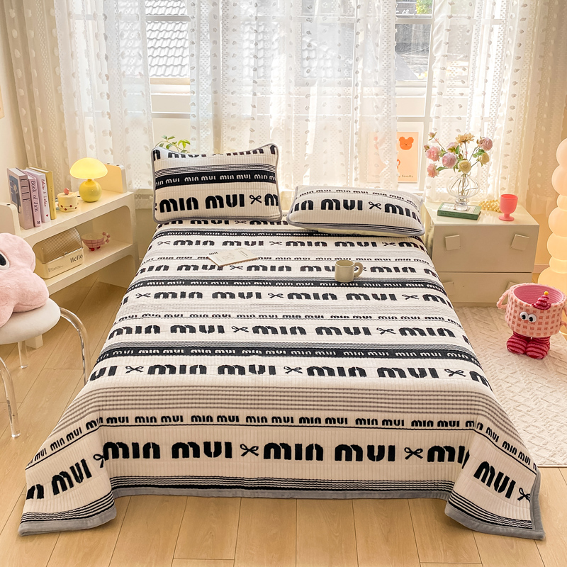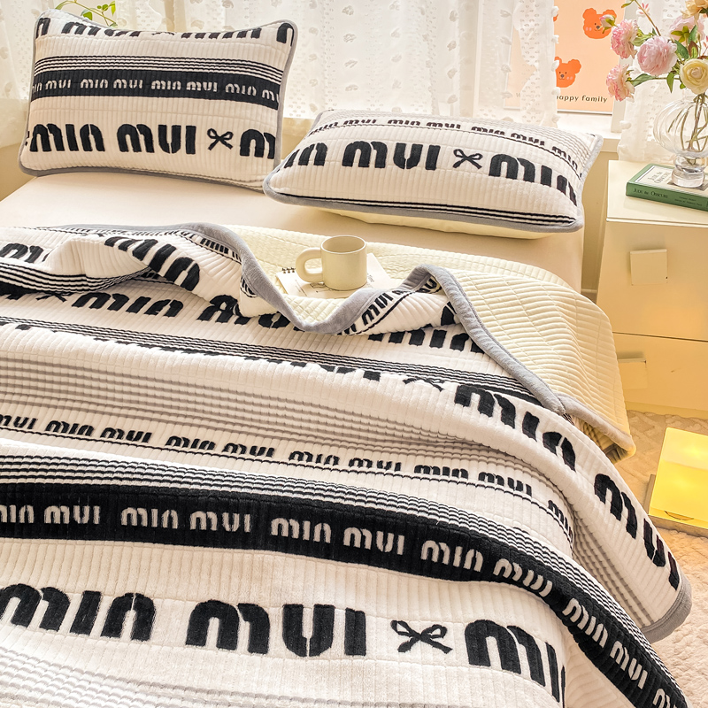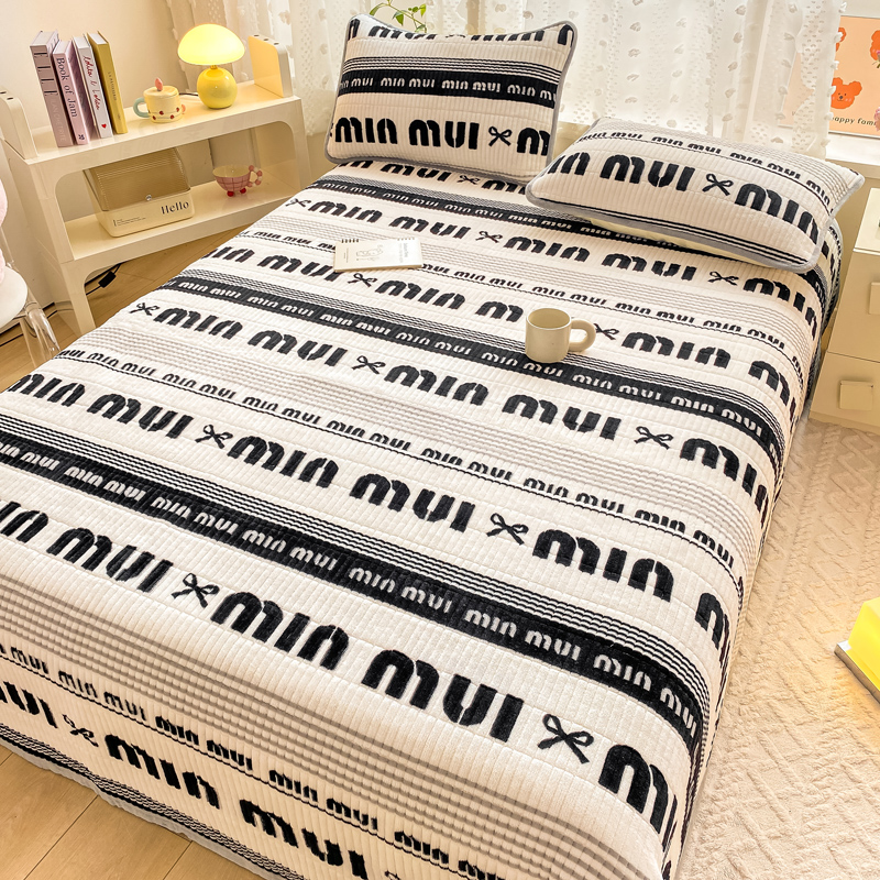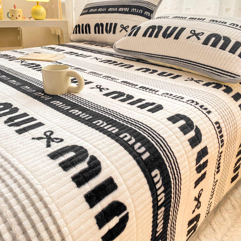 家喜爱 2024新款A类牛奶绒夹棉加厚直边软床盖 迷你字母