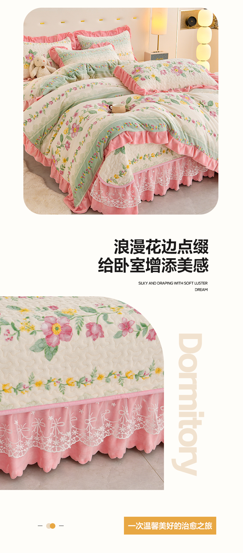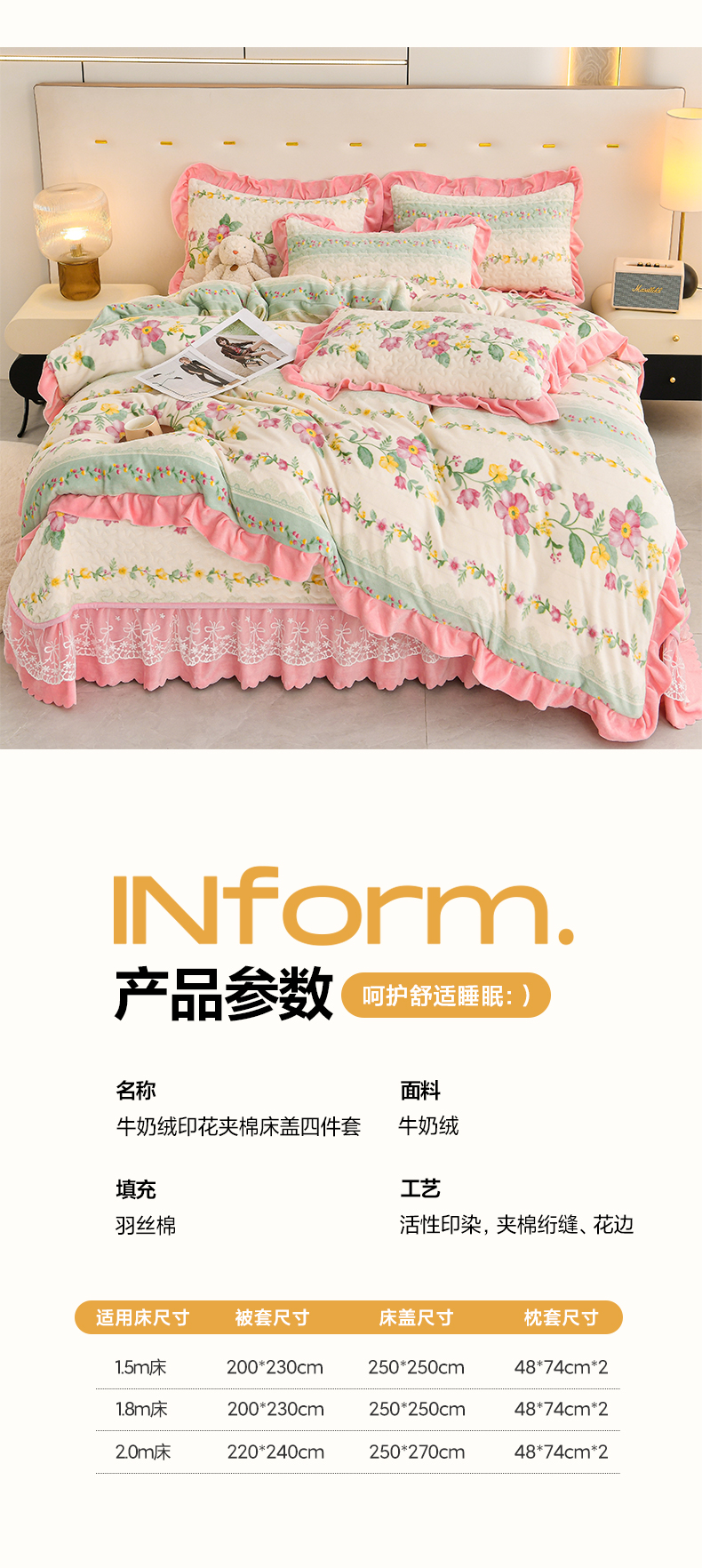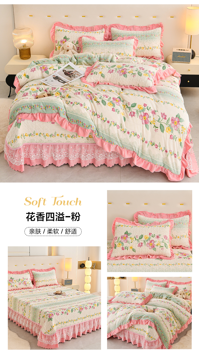 当前位置: 91家纺网 > 商品网购 > 床品套件 > 四件套 > 牛奶绒四件套 > 民新家纺 2025新款牛奶绒印花夹棉床盖四件套 花香四溢-粉