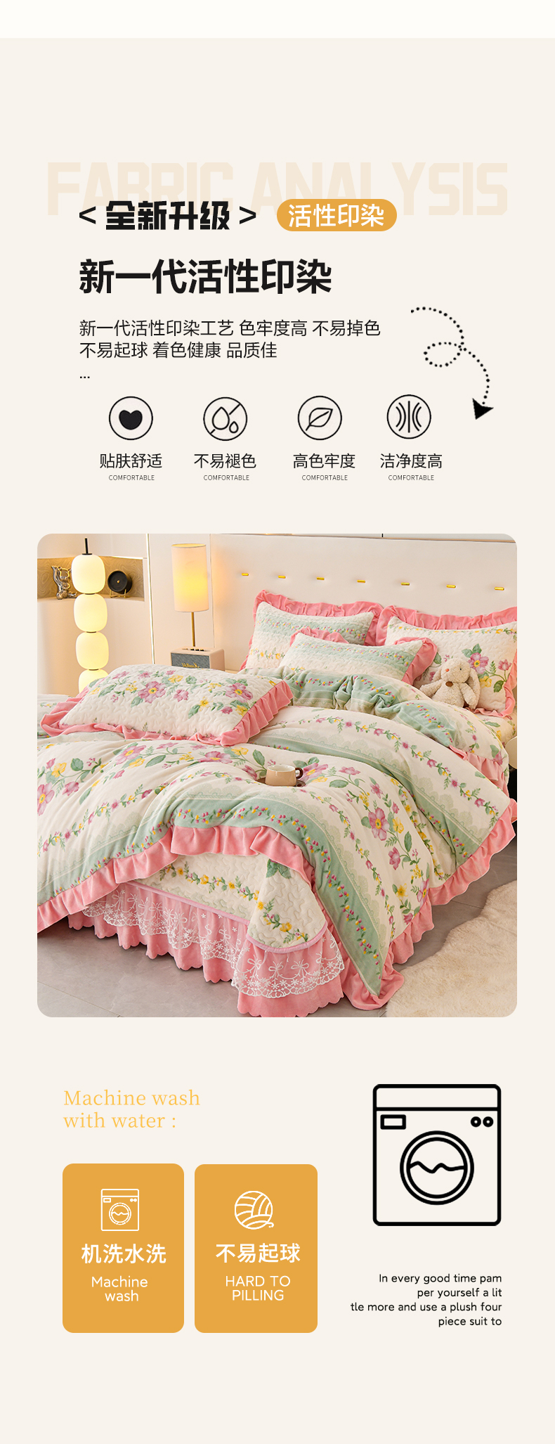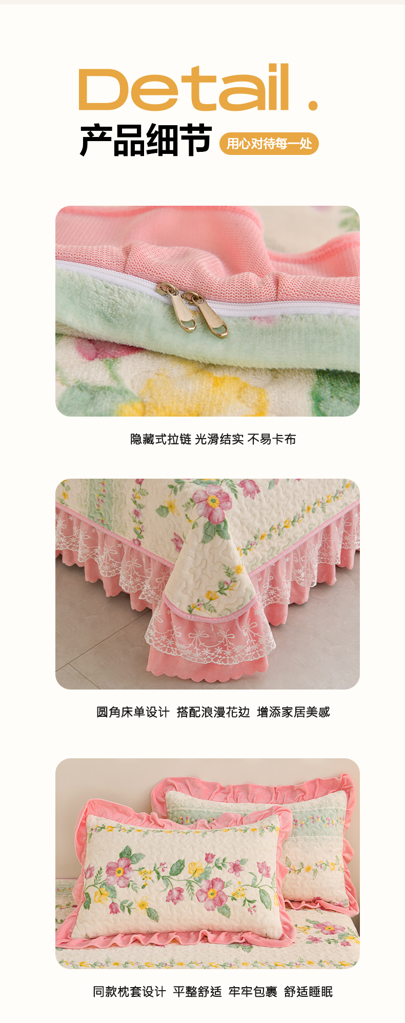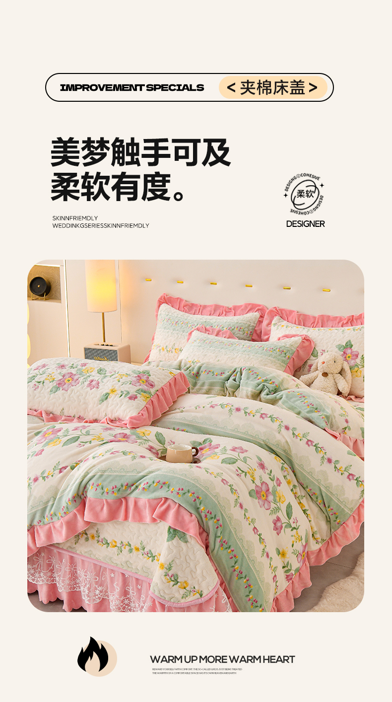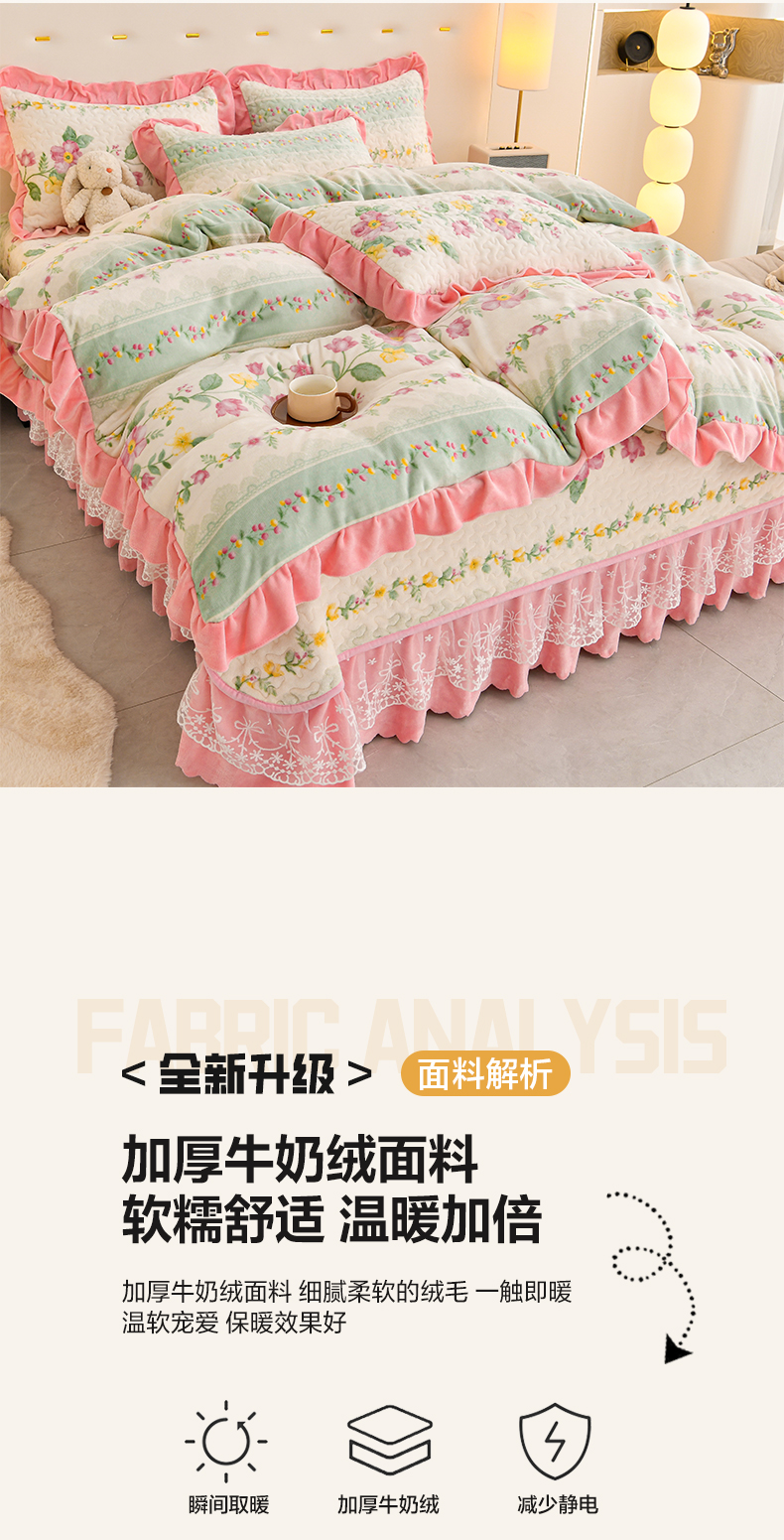 当前位置: 91家纺网 > 商品网购 > 床品套件 > 四件套 > 牛奶绒四件套 > 民新家纺 2025新款牛奶绒印花夹棉床盖四件套 花香四溢-粉