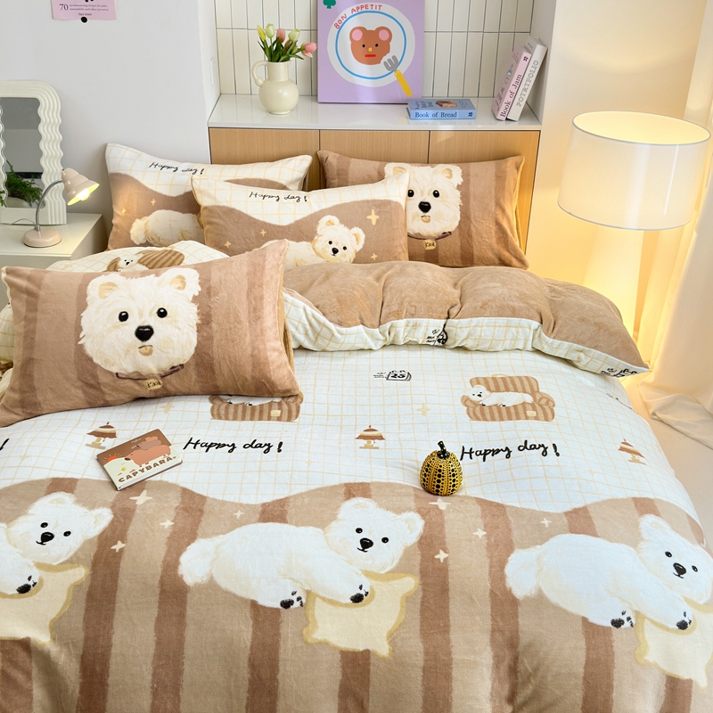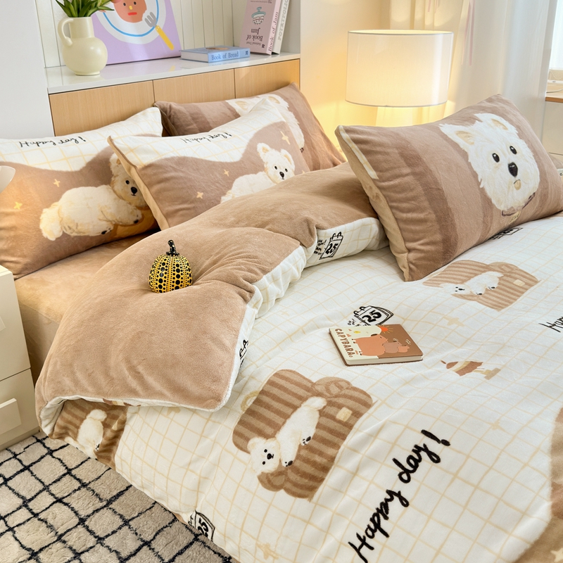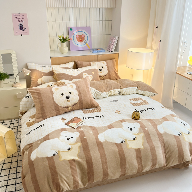 商品名称:柚子YOUTH 2024新款加厚纯印花牛奶绒四件套 沙发狗