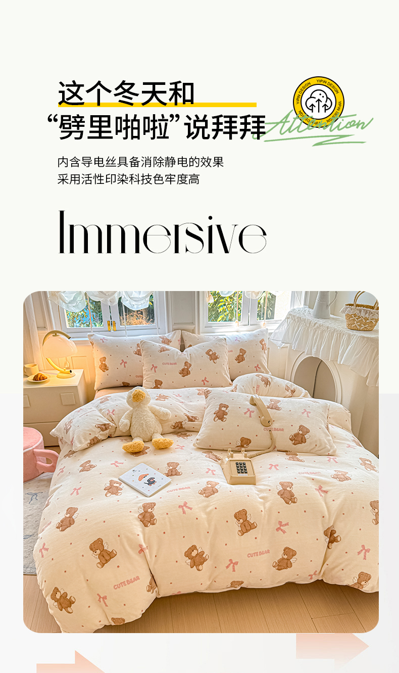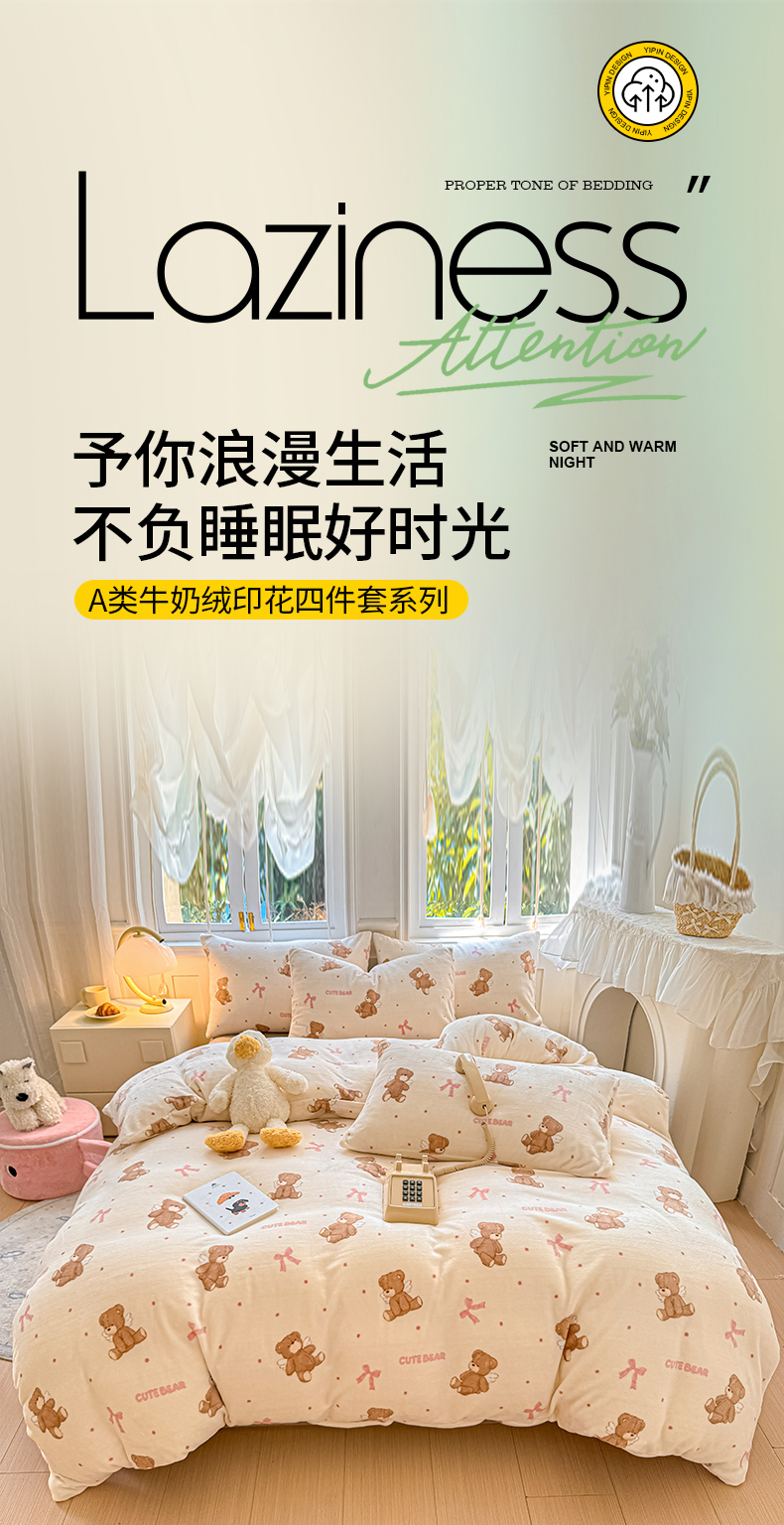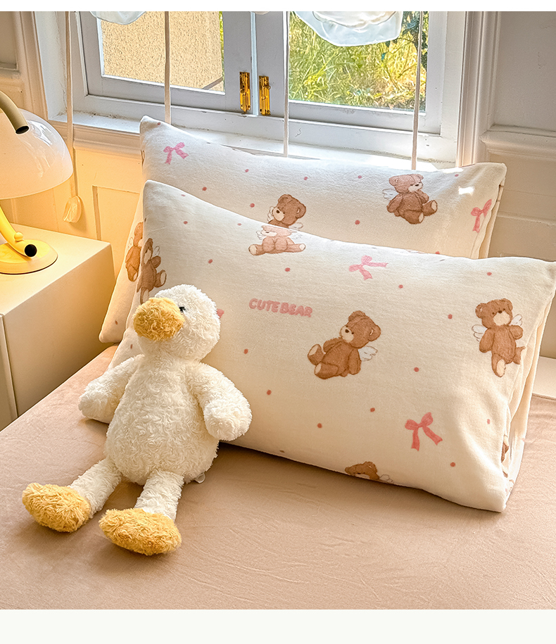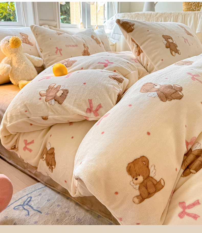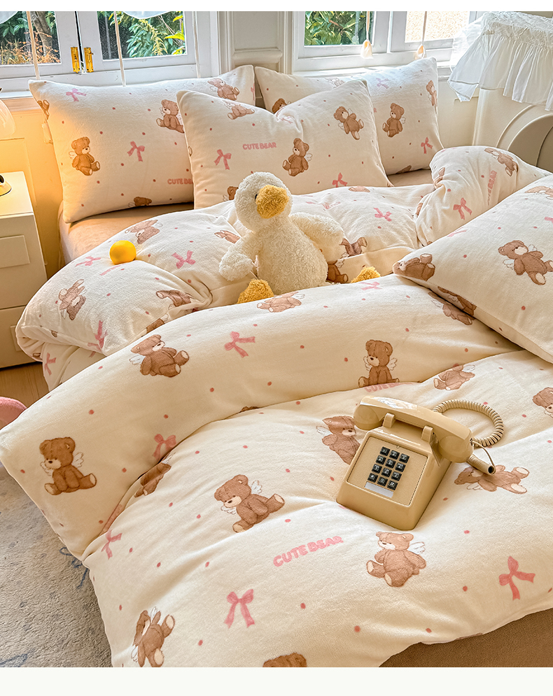 商品名称:红粉佳人 2025新款小清新双面牛奶绒四件套天使熊