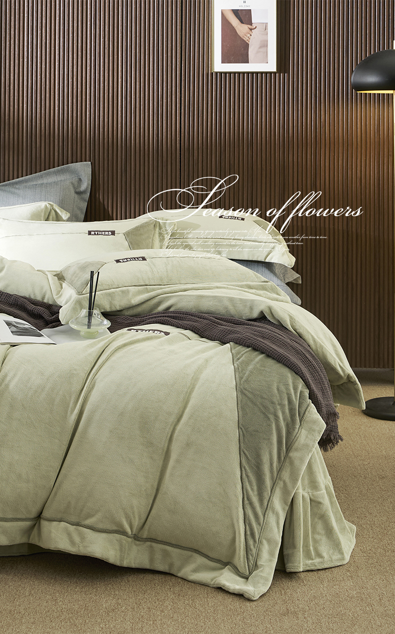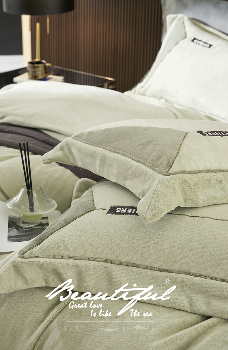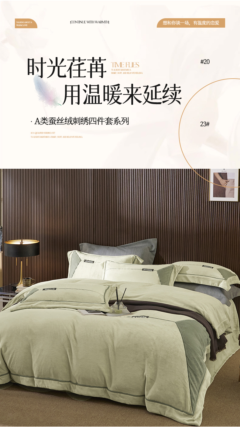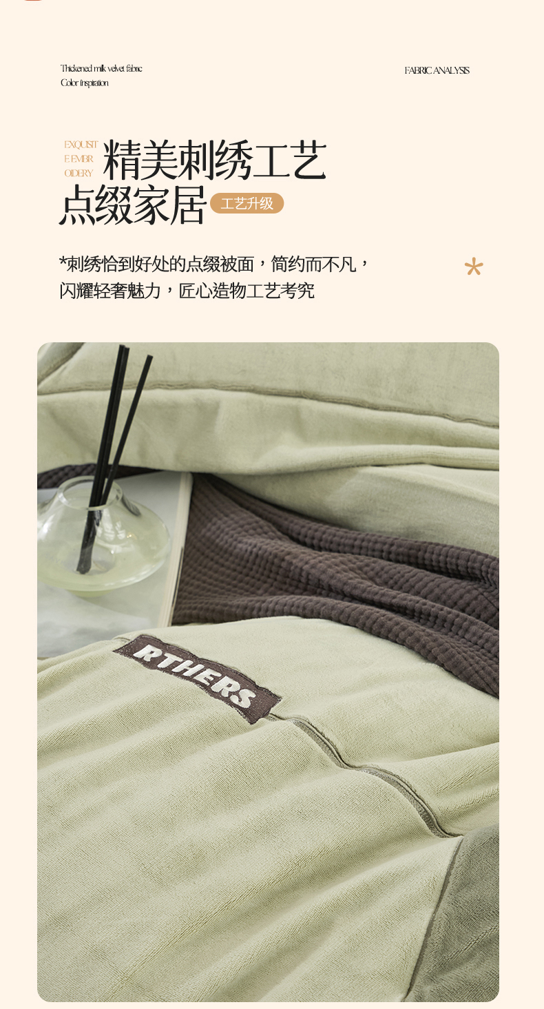 名品优仓 2024新款高克重牛奶绒刺绣四件套-巴伦西亚 绿矾